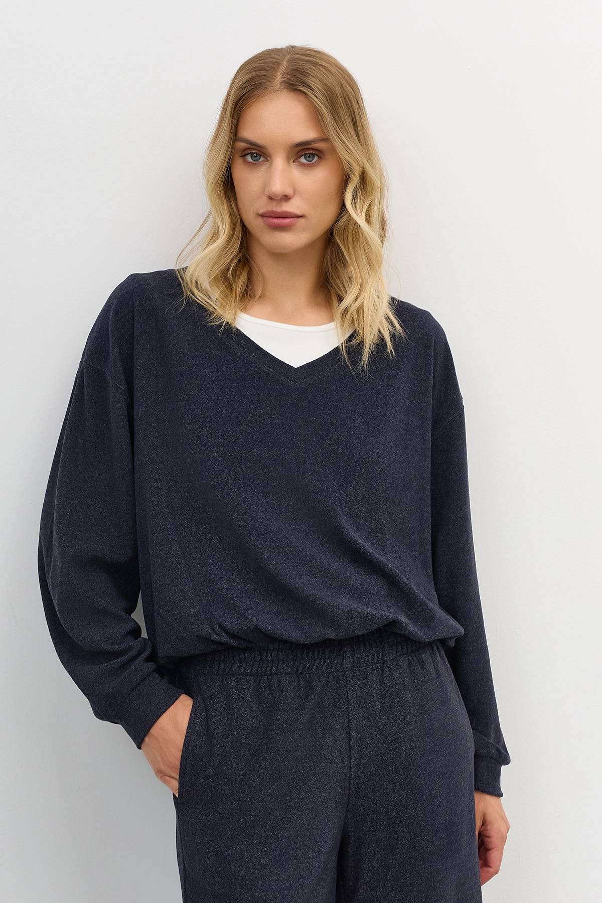 Лимитированная серия темно-синий джемпер с палантином, 50