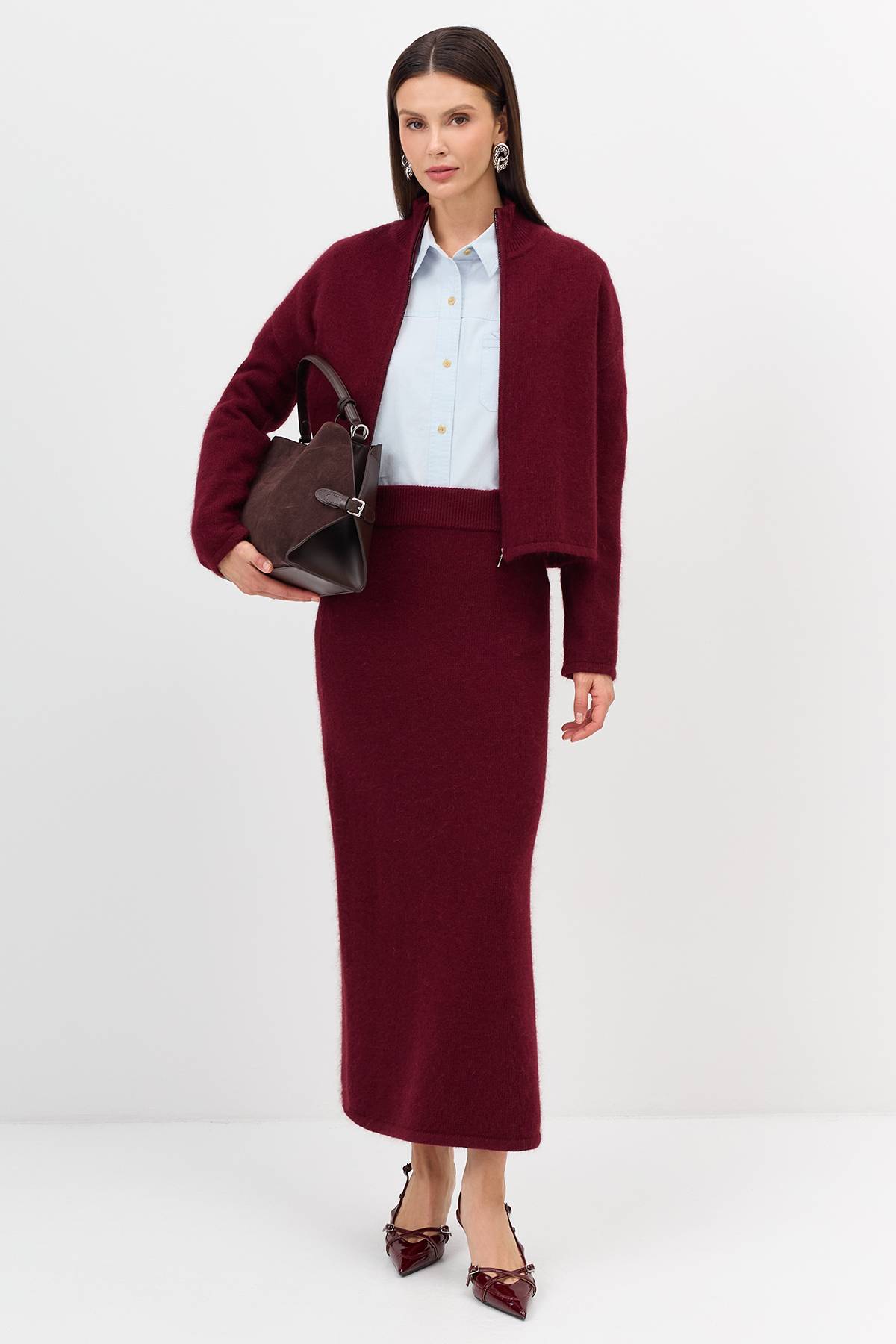 Лимитированная серия укороченный бомбер с ангорой и ремень, 36