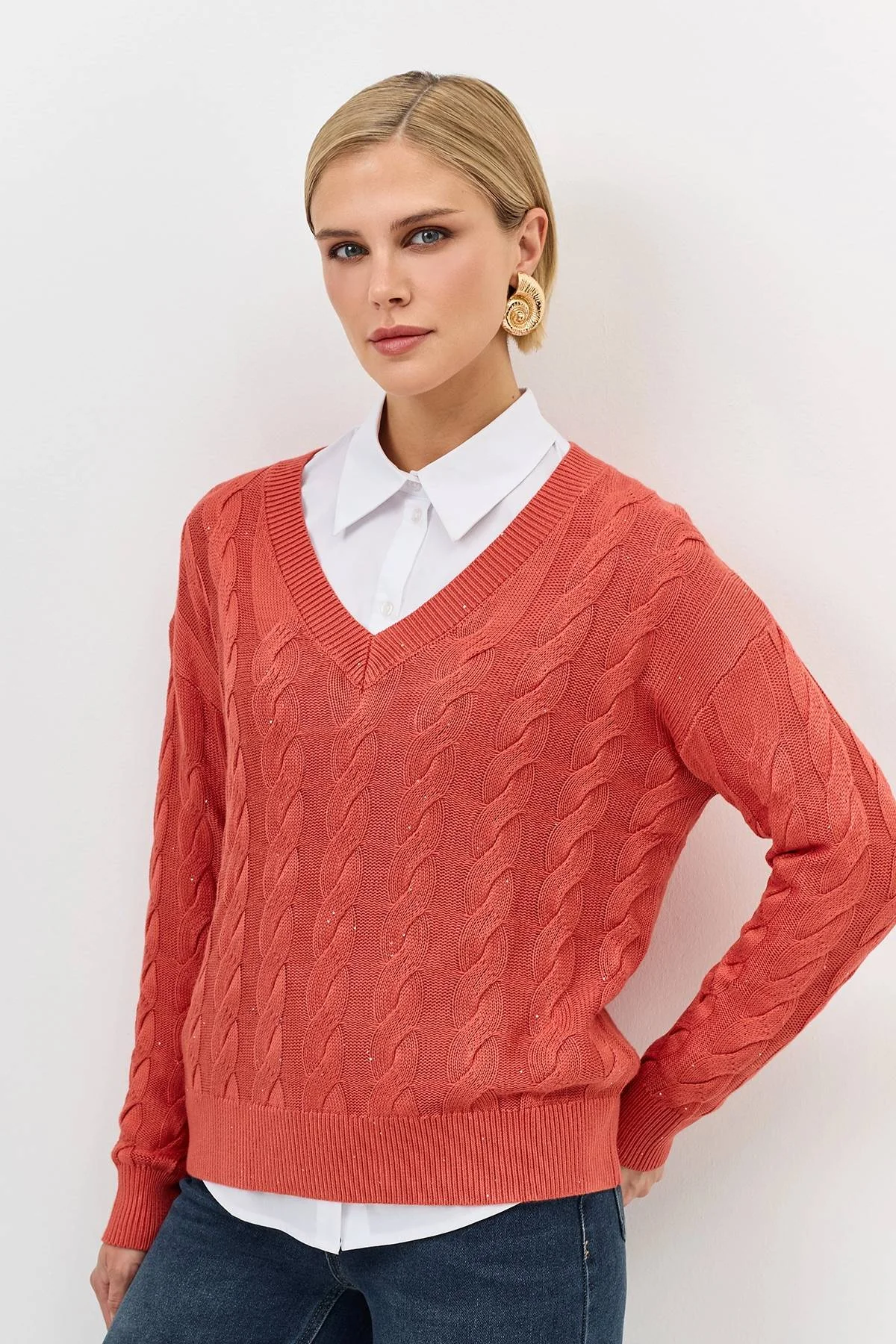Лимитрированная серия яркий джемпер с косами и ремень, 44