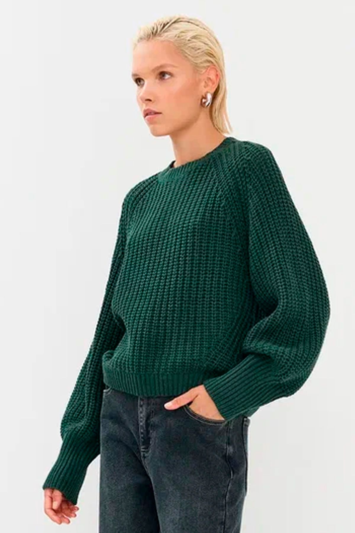 Объемный укороченный свитер крупной вязки - это модный и уютный элемент гардероба, который идеально подходит для холодного времени года. Его круглый вырез горловины подчеркивает женственность и делает свитер универсальным для сочетания с различными блузами и топами. Свободный силуэт обеспечивает комфорт и свободу движений, позволяя легко комбинировать свитер с различными низами — от узких джинсов до высоких юбок. Объемная текстура крупной вязки придает изделию дополнительный уют и делает его визуально привлекательным. Длинные рукава с высокими манжетами не только защищают от холода, но и создают интересный акцент, придавая образу современный вид. Такой свитер можно носить как в расслабленном, так и в более нарядном варианте, добавив к нему аксессуары и стильные обувь. Этот укороченный свитер станет отличным дополнением вашего осенне-зимнего гардероба и поможет создать стильные и комфортные образы на каждый день.