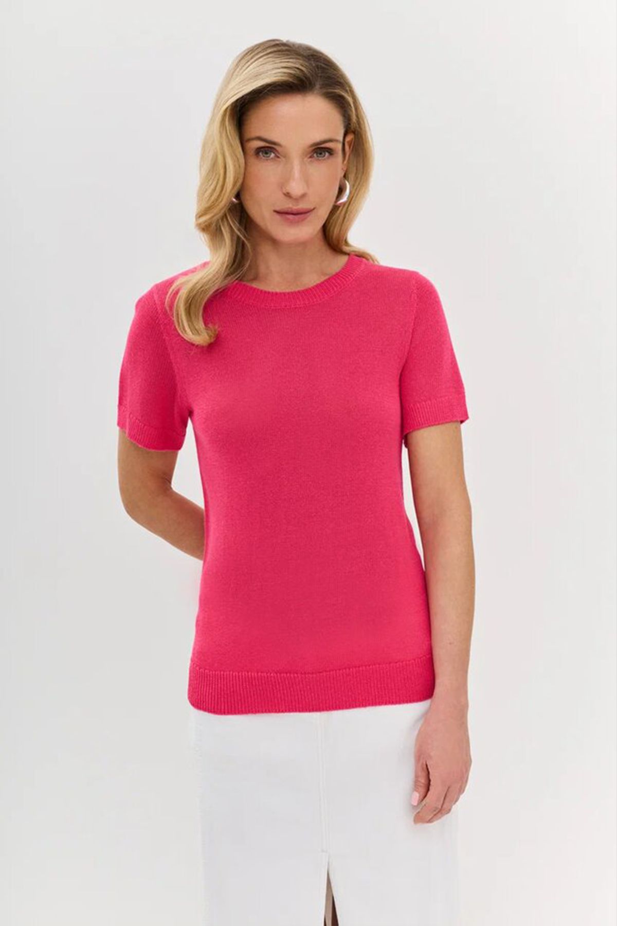 Облегающий джемпер в цвете фуксия с коротким рукавом, 50р