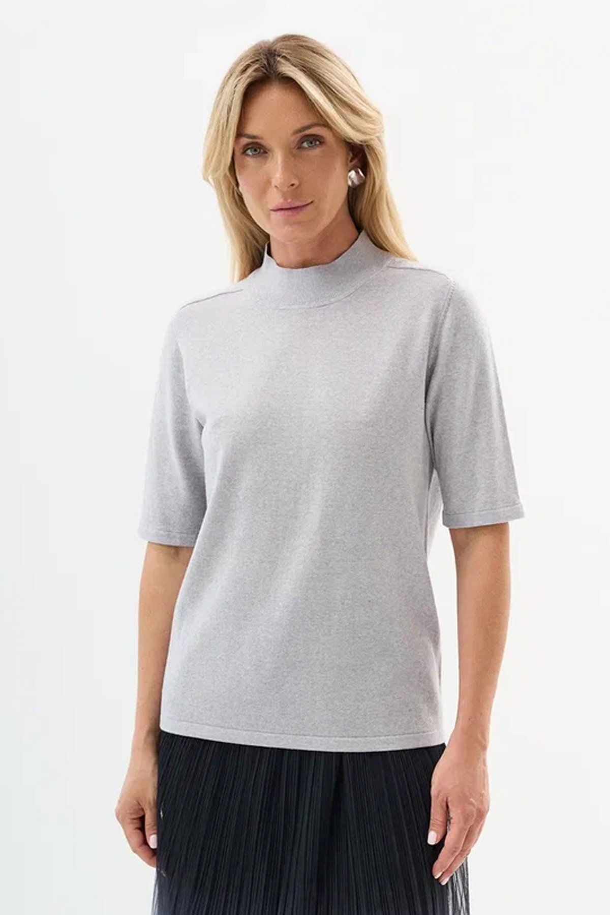 Тонкий шерстяной джемпер с коротким рукавом - отличный выбор для создания стильного и легкого образа в прохладную погоду. Воротник-стойка придаёт джемперу современный и изысканный вид, а прямой силуэт обеспечивает удобство и комфорт. Этот джемпер прекрасно подходит для слоёв, легко комбинируется с рубашками или блузами, создавая многослойные образы. Идеален как для повседневной носки, так и для более формальных ситуаций, когда требуется элегантный, но непринужденный стиль.