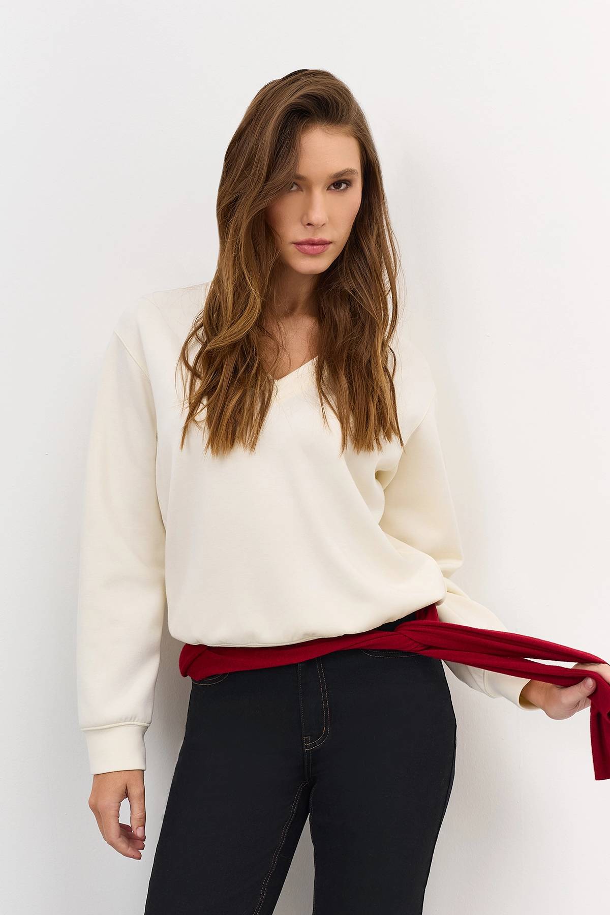 Светлый свободный свитер с шерстью, 50