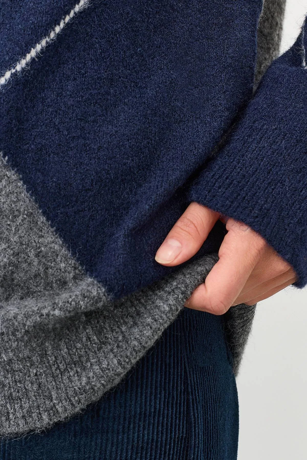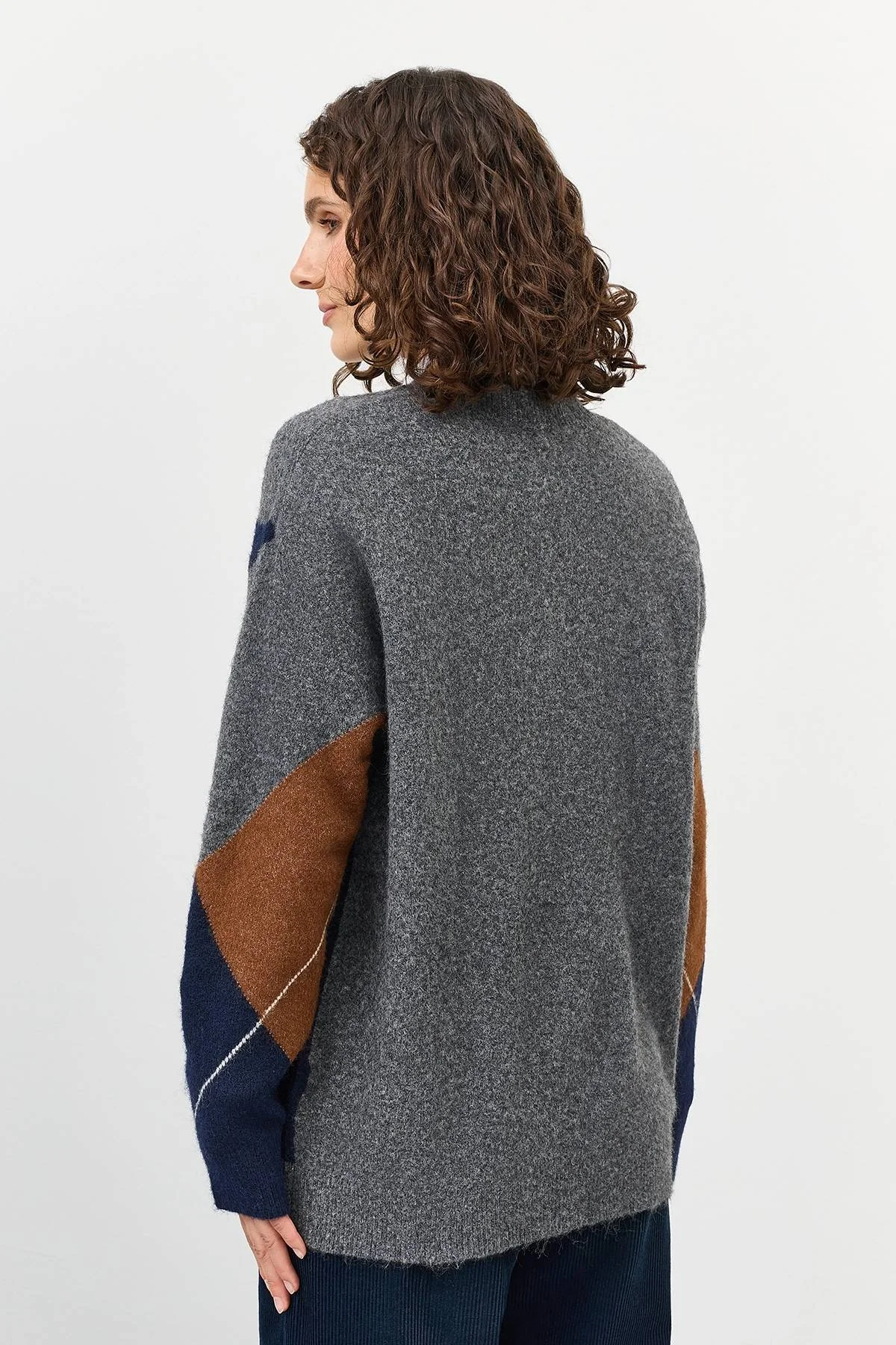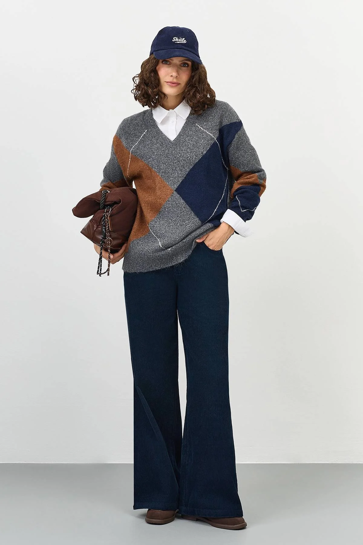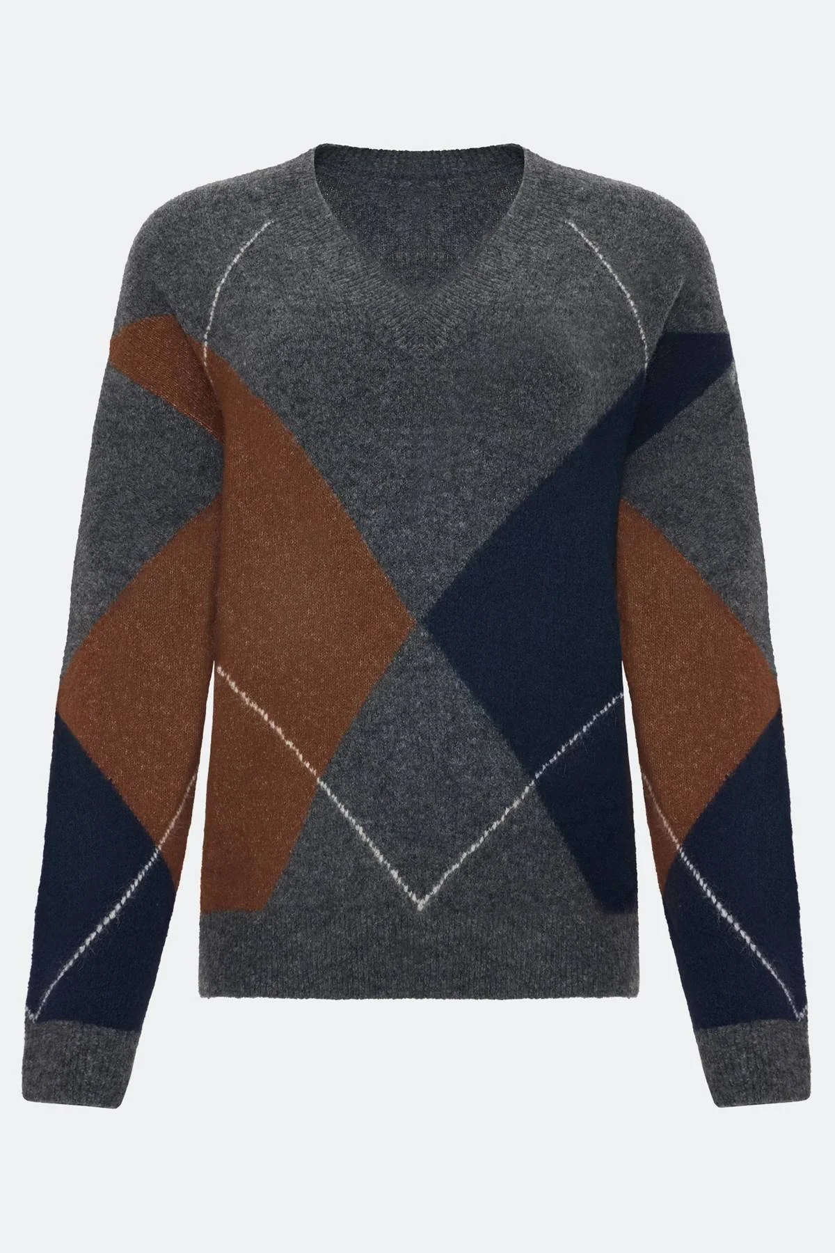 Мягкий свитер с узором "аргайл" из пряжи с добавлением шерсти. Прямой силуэт. V-образный вырез. Спущенная линия плеч. В составе шерсть.