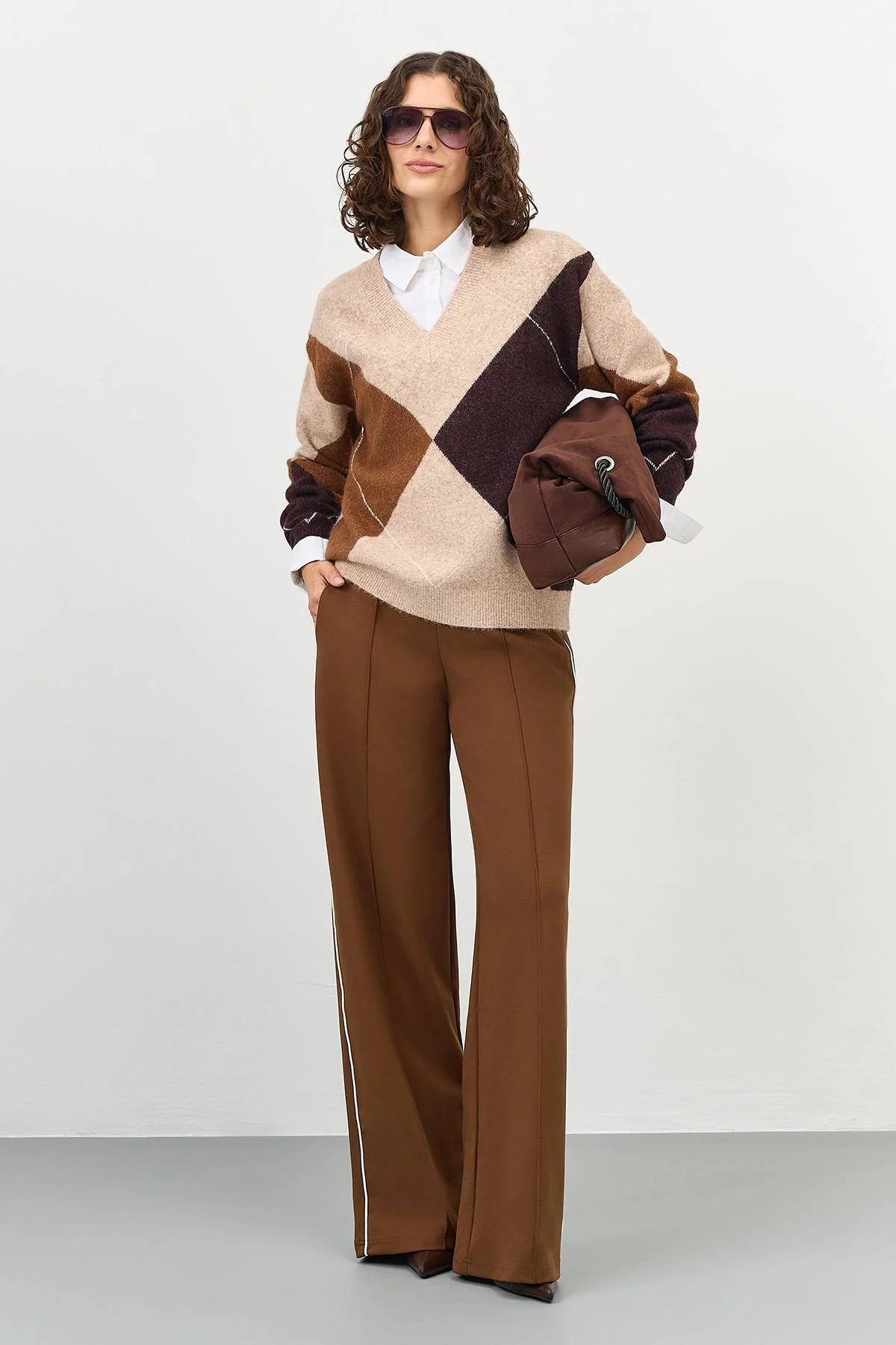 Мягкий свитер с узором "аргайл" из пряжи с добавлением шерсти. Прямой силуэт. V-образный вырез. Спущенная линия плеч. В составе шерсть.