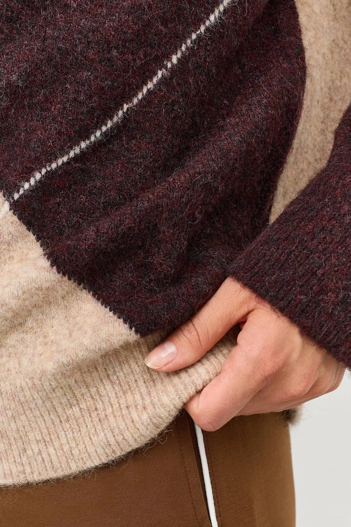 Мягкий свитер с узором "аргайл" из пряжи с добавлением шерсти. Прямой силуэт. V-образный вырез. Спущенная линия плеч. В составе шерсть.