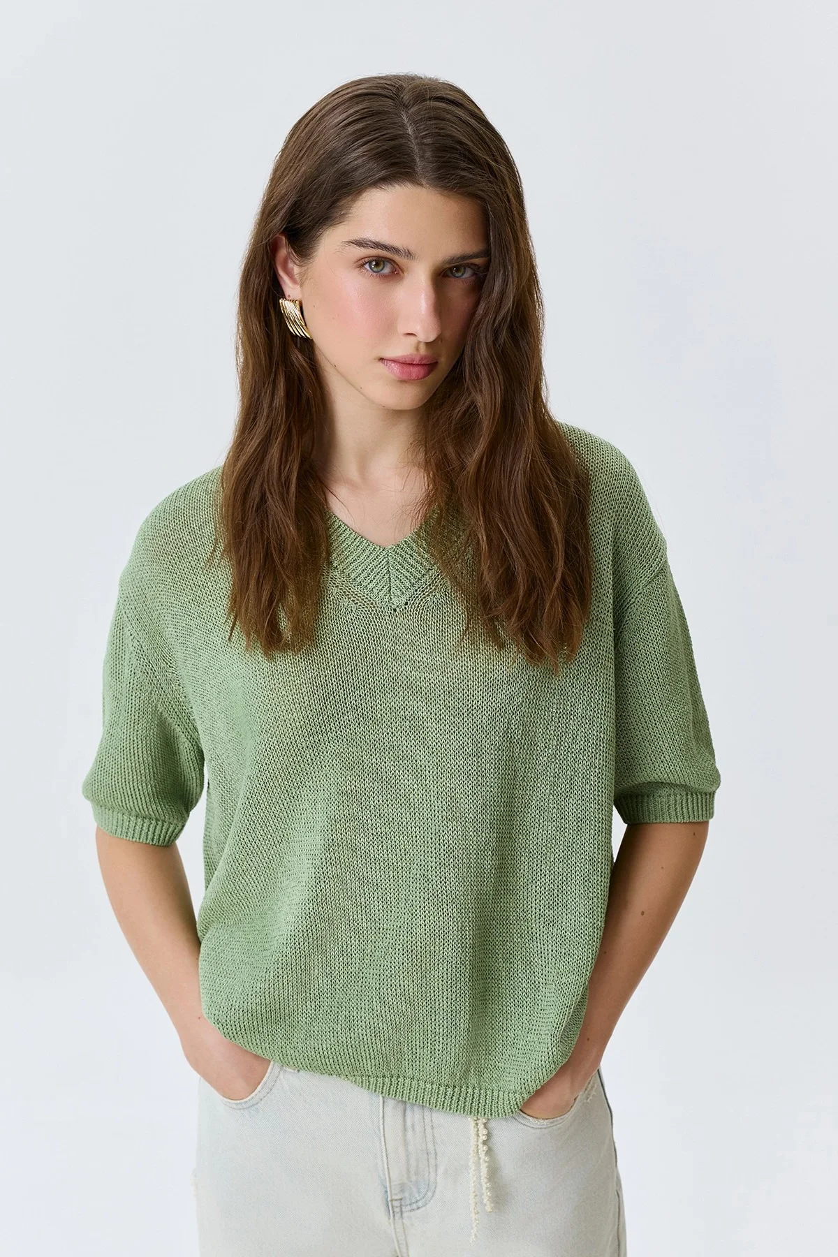 Свободный джемпер из фактурной пряжи, 48