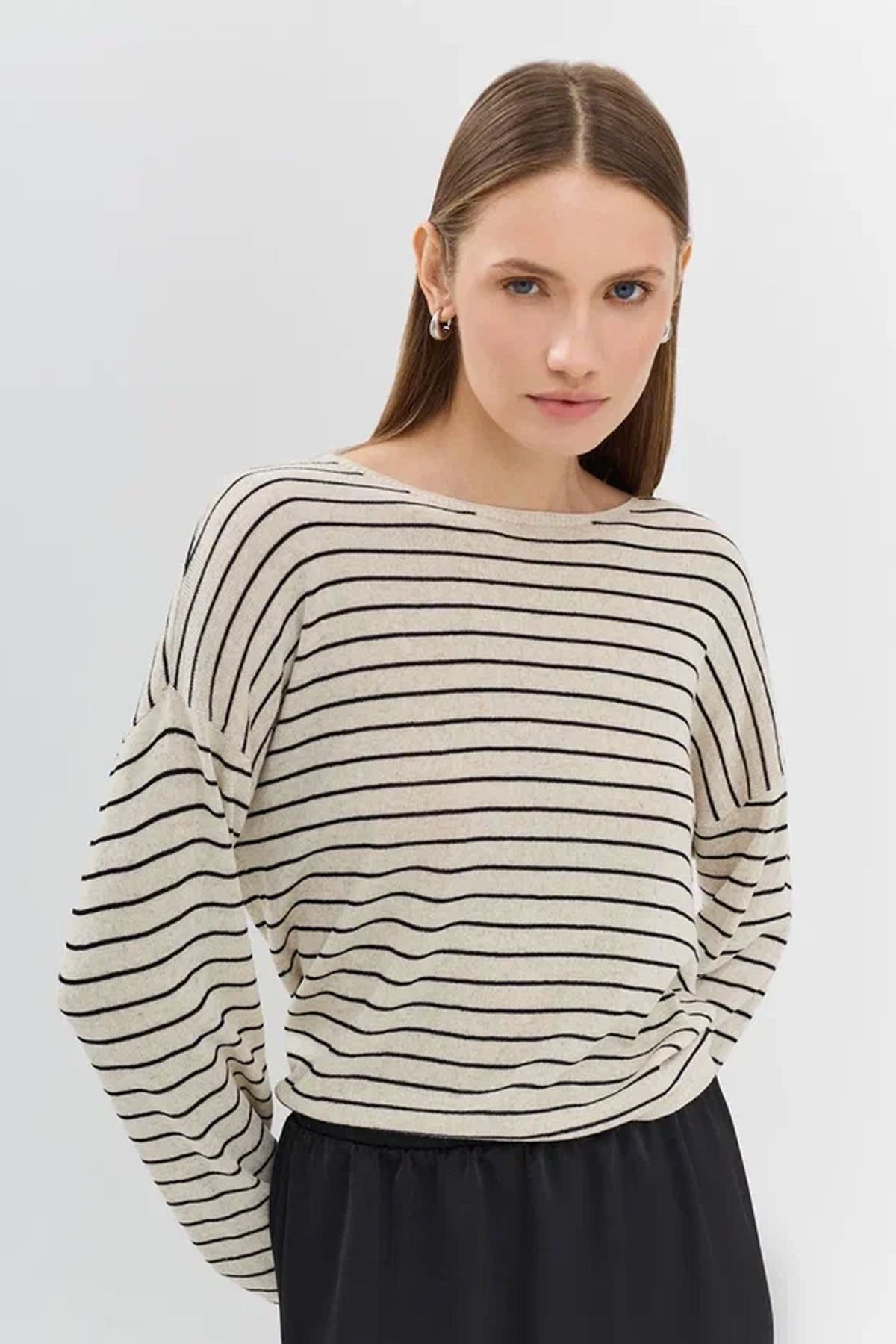 Свободный джемпер в тонкую полоску в светло-бежевом цвете, 42р