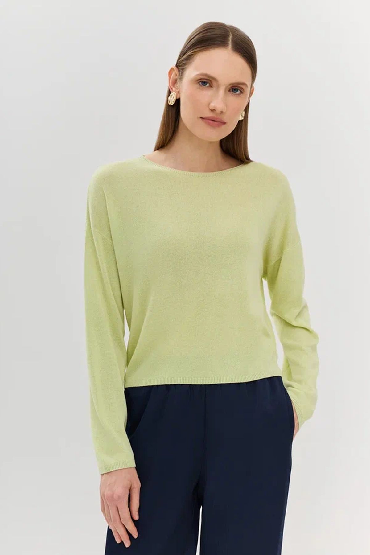 Яркий вязаный джемпер прямого силуэта в цвете лайм, 50р