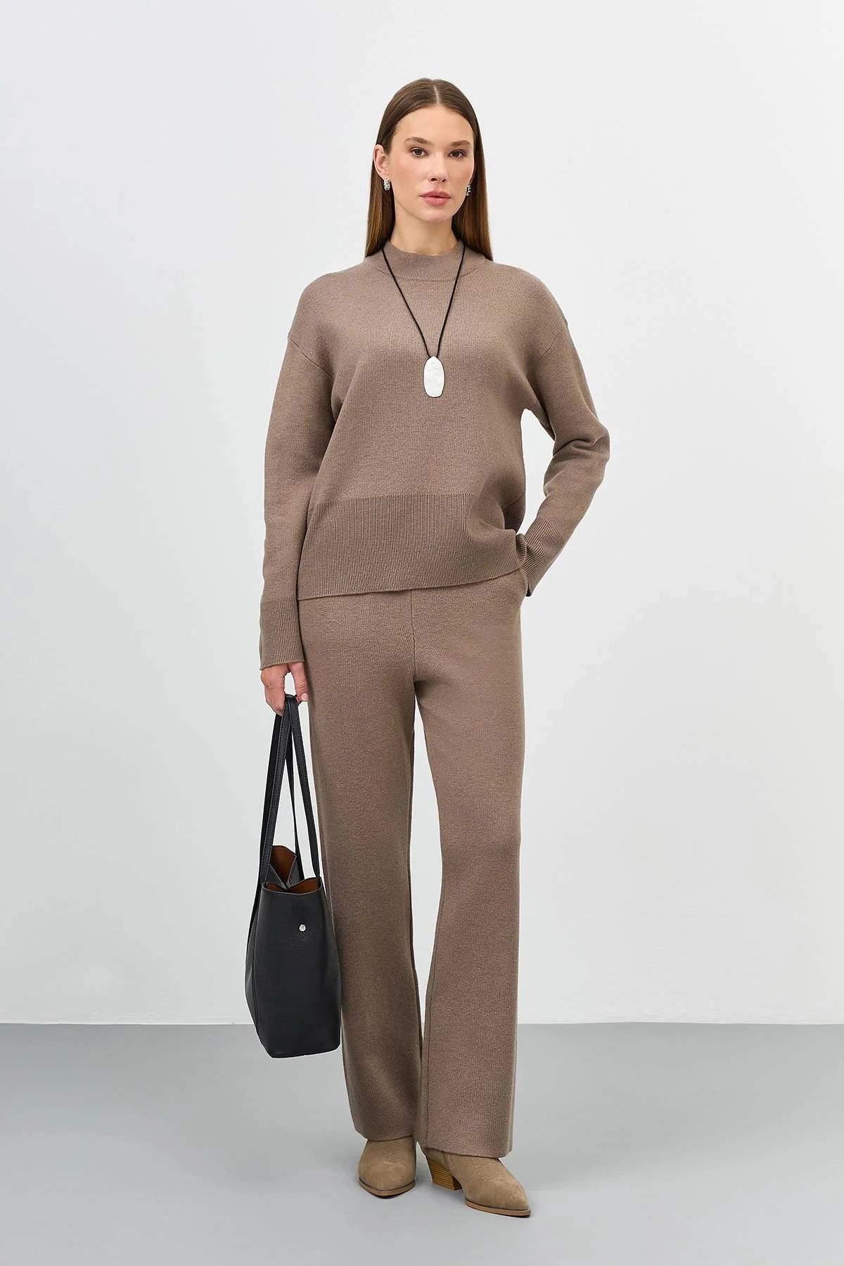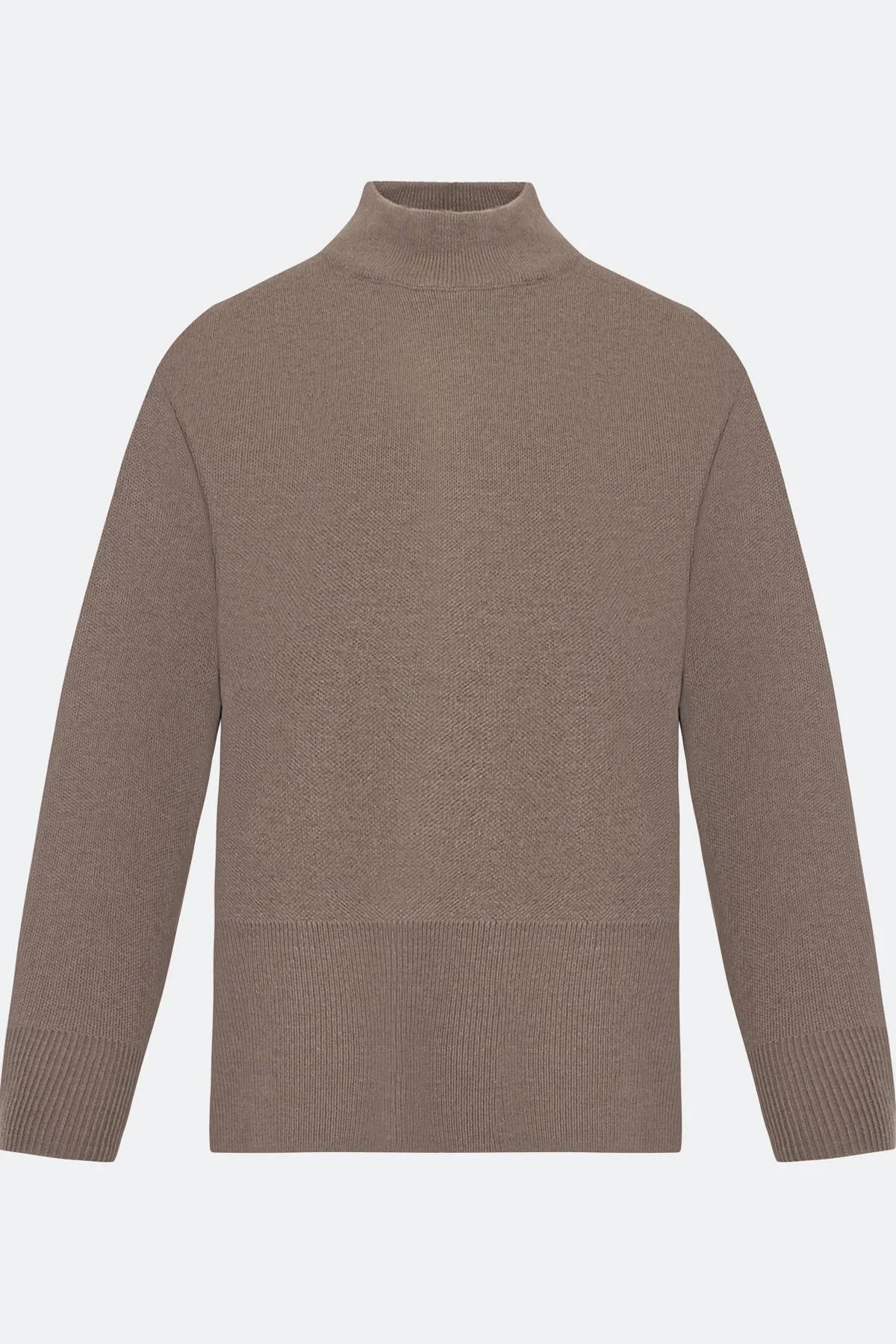 Свободный свитер с шерстью в составе. Свободный силуэт. Спущенная линия плеч. Воротник стойка. Широкие манжеты по низу рукавов и изделия. Комплект с арт. 60907.
