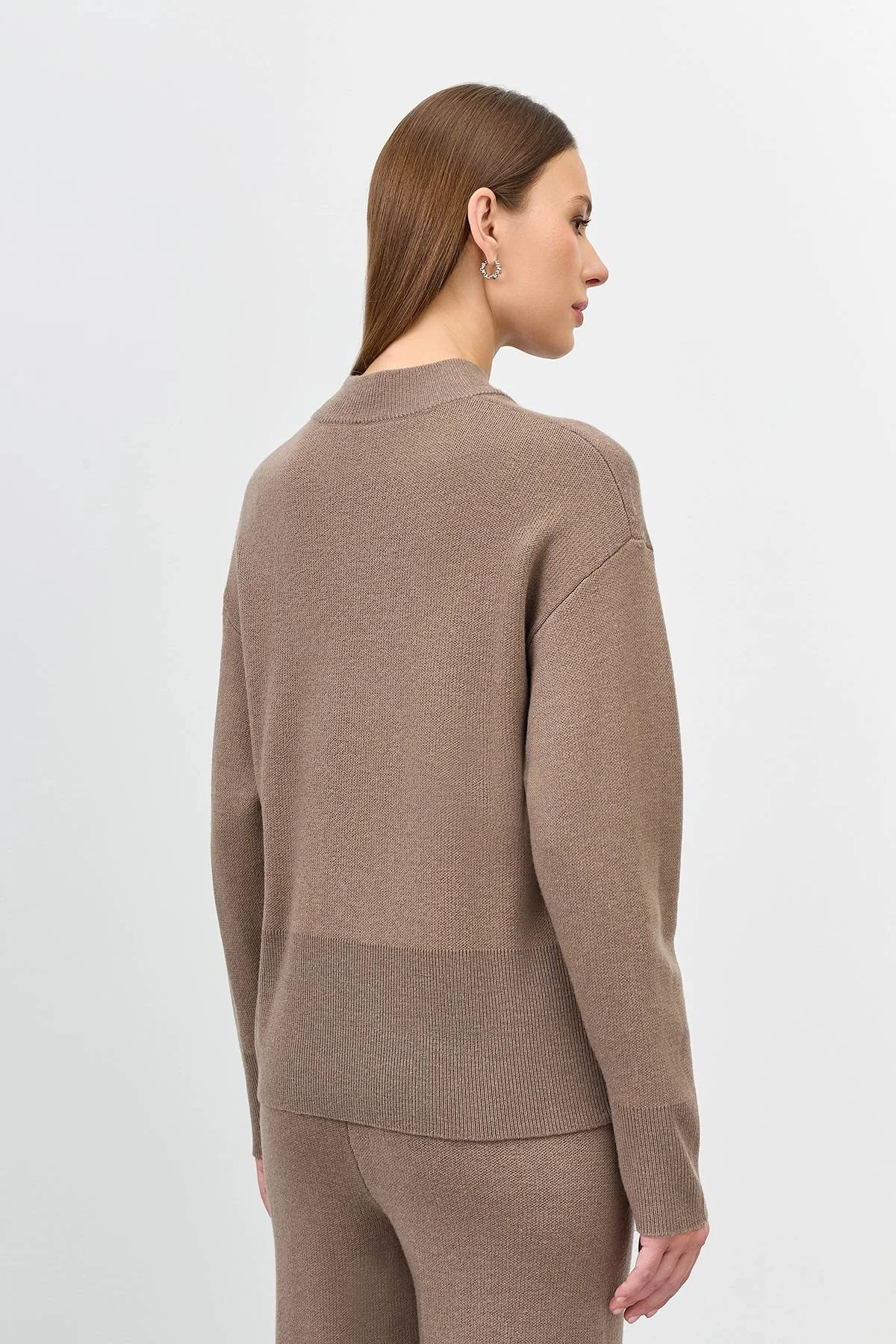 Свободный свитер с шерстью в составе. Свободный силуэт. Спущенная линия плеч. Воротник стойка. Широкие манжеты по низу рукавов и изделия. Комплект с арт. 60907.