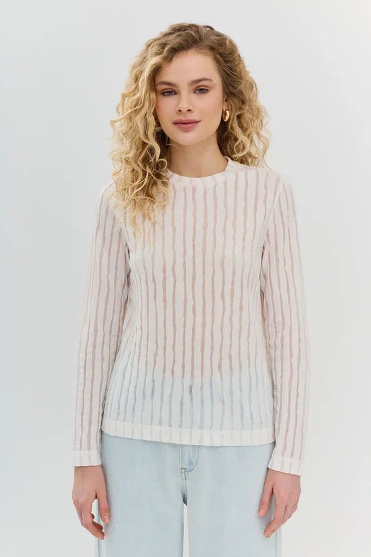 Тонкий полупрозрачный джемпер из фактурного трикотажа, 44р