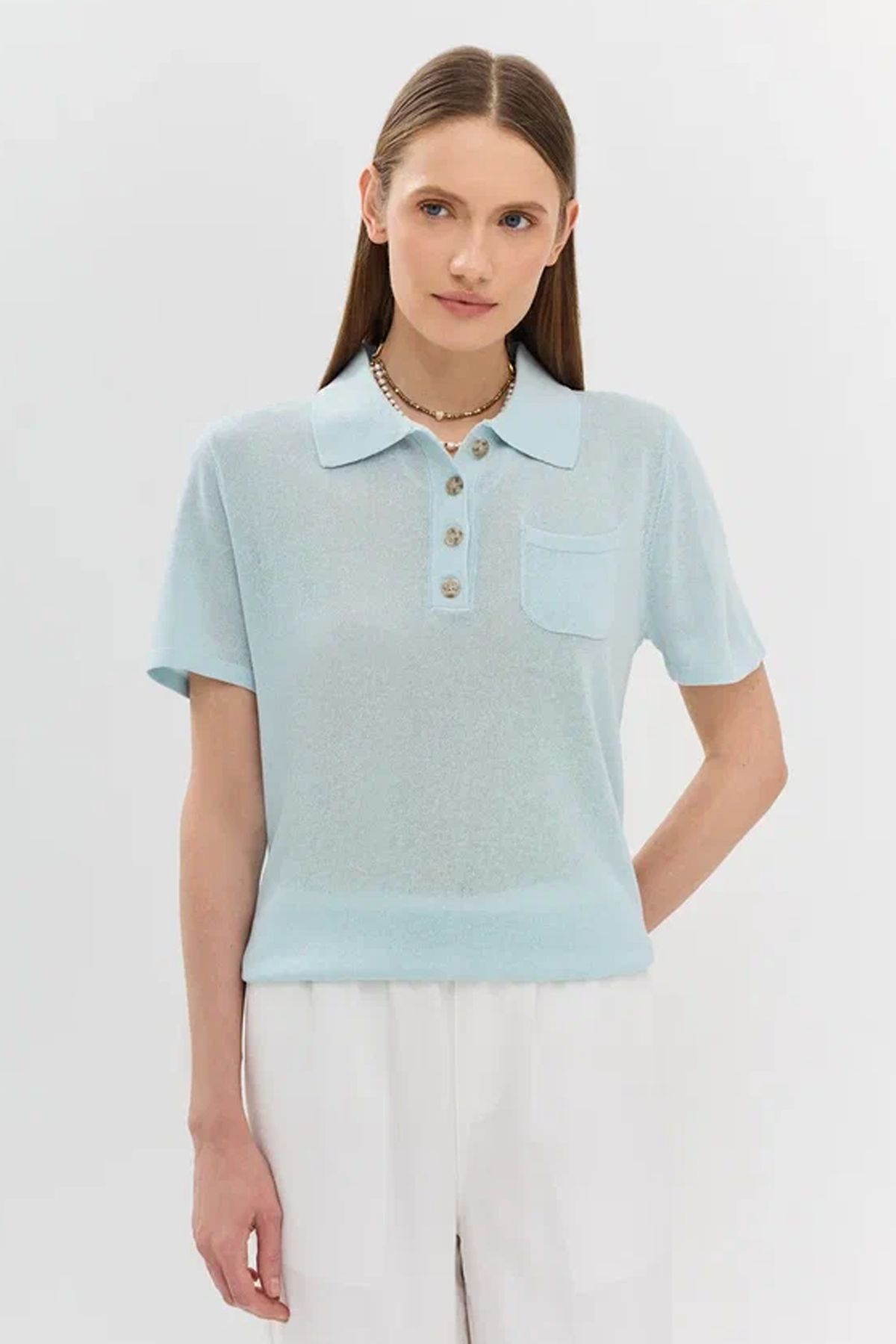 Трикотажное поло из тенселя и льна в серо-голубом цвете, 42р