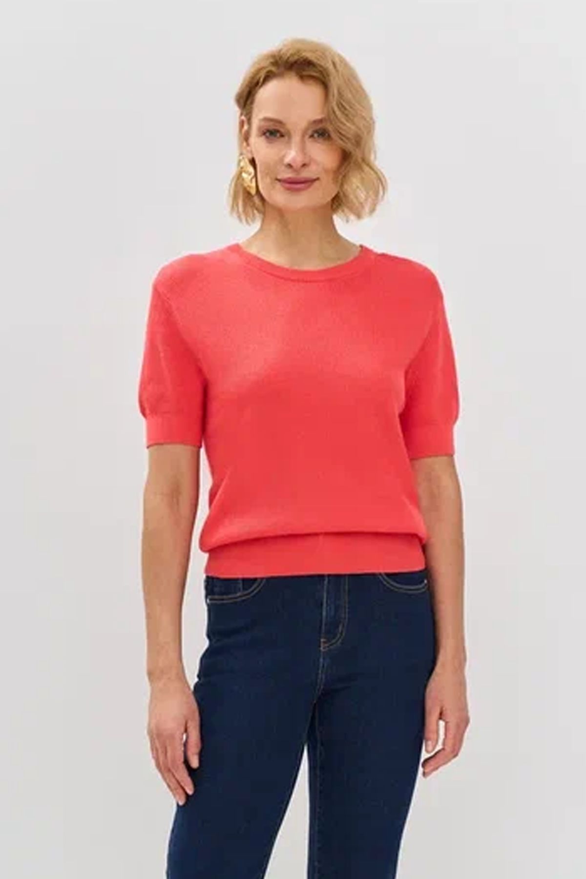 Вязаный джемпер из модала и хлопка в коралловом цвете, 52р