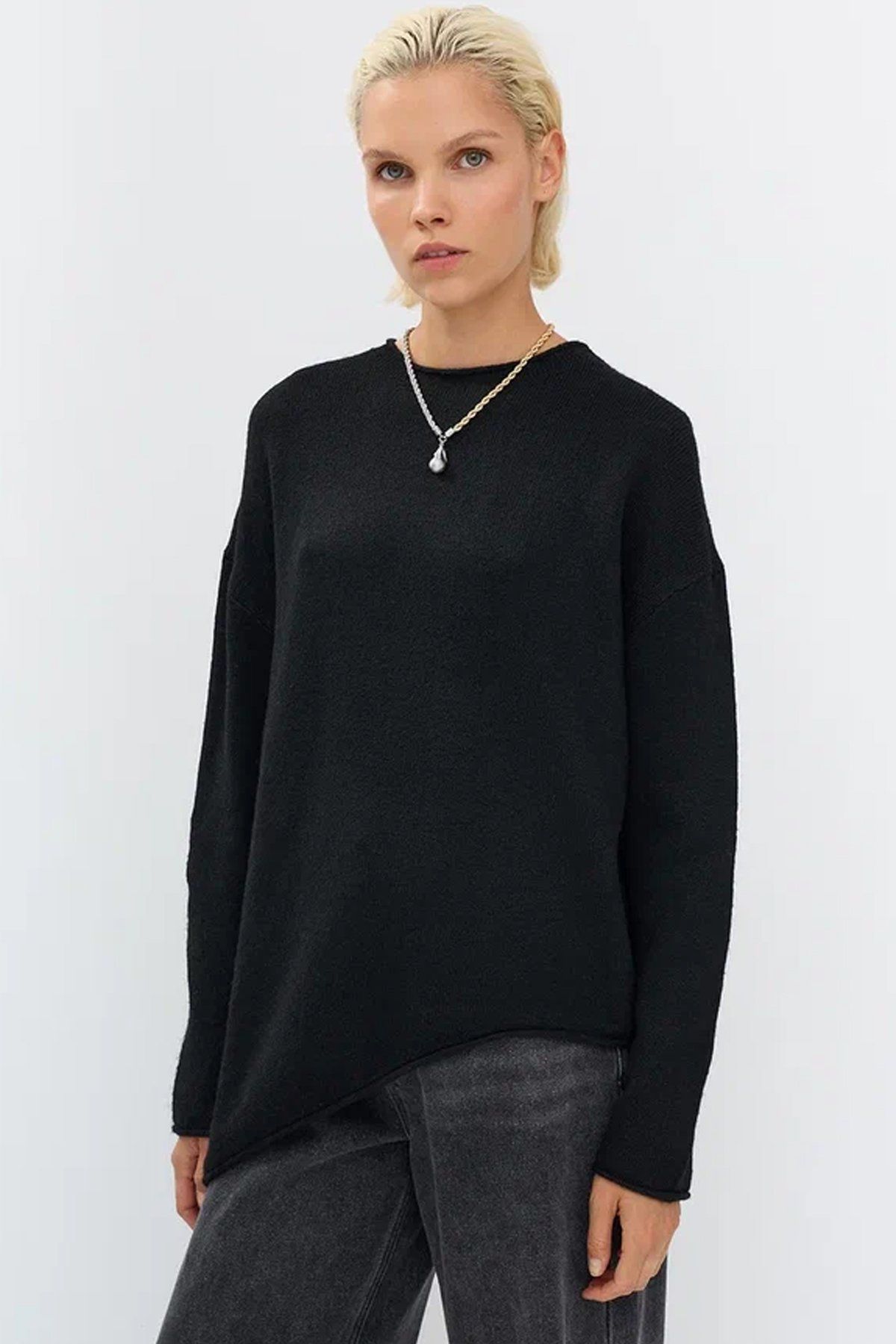 Трикотажный джемпер с ассиметричным краем в черном цвете, 44р