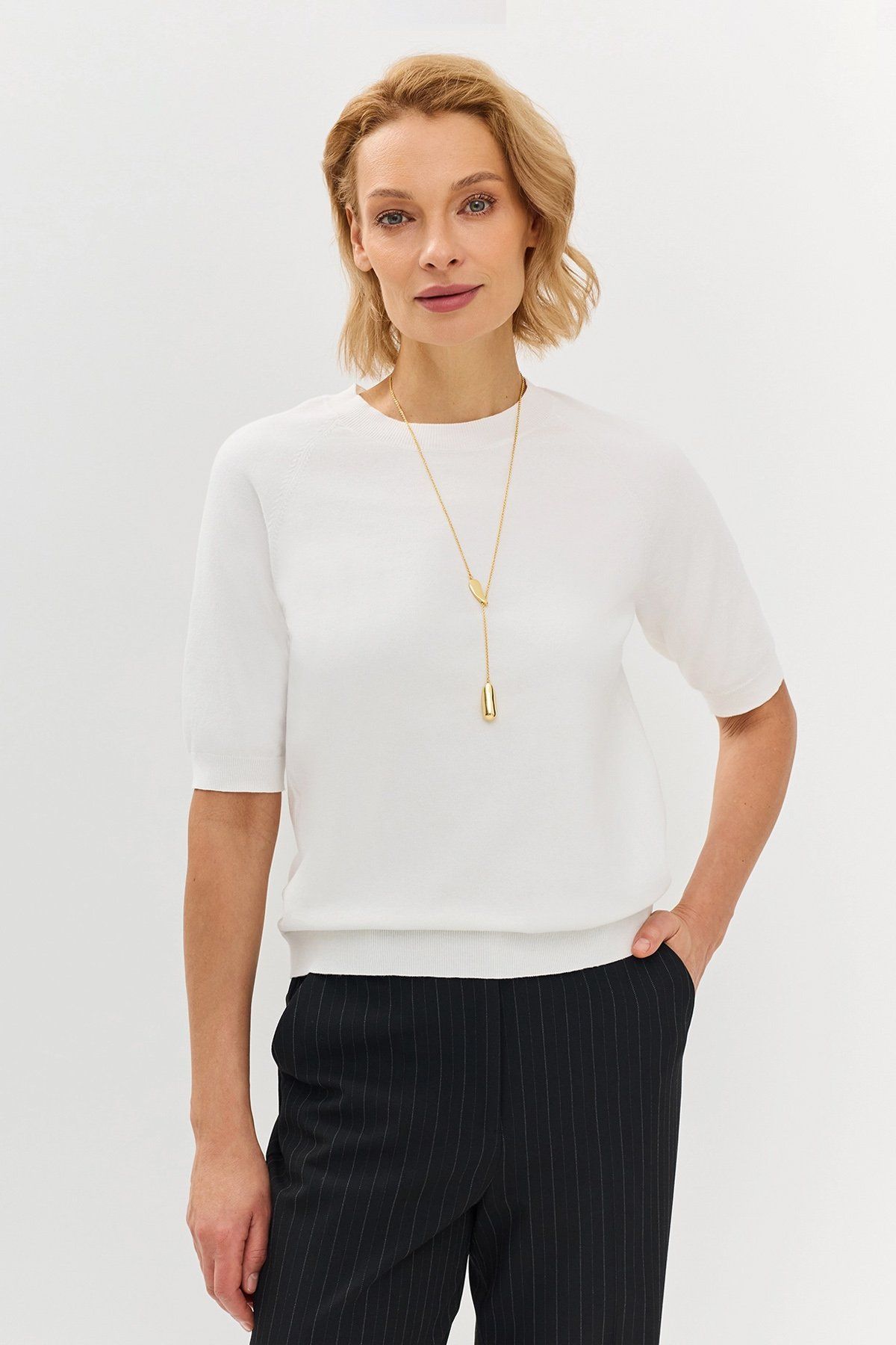 Трикотажный хлопковый джемпер с укороченными рукавами, 50р