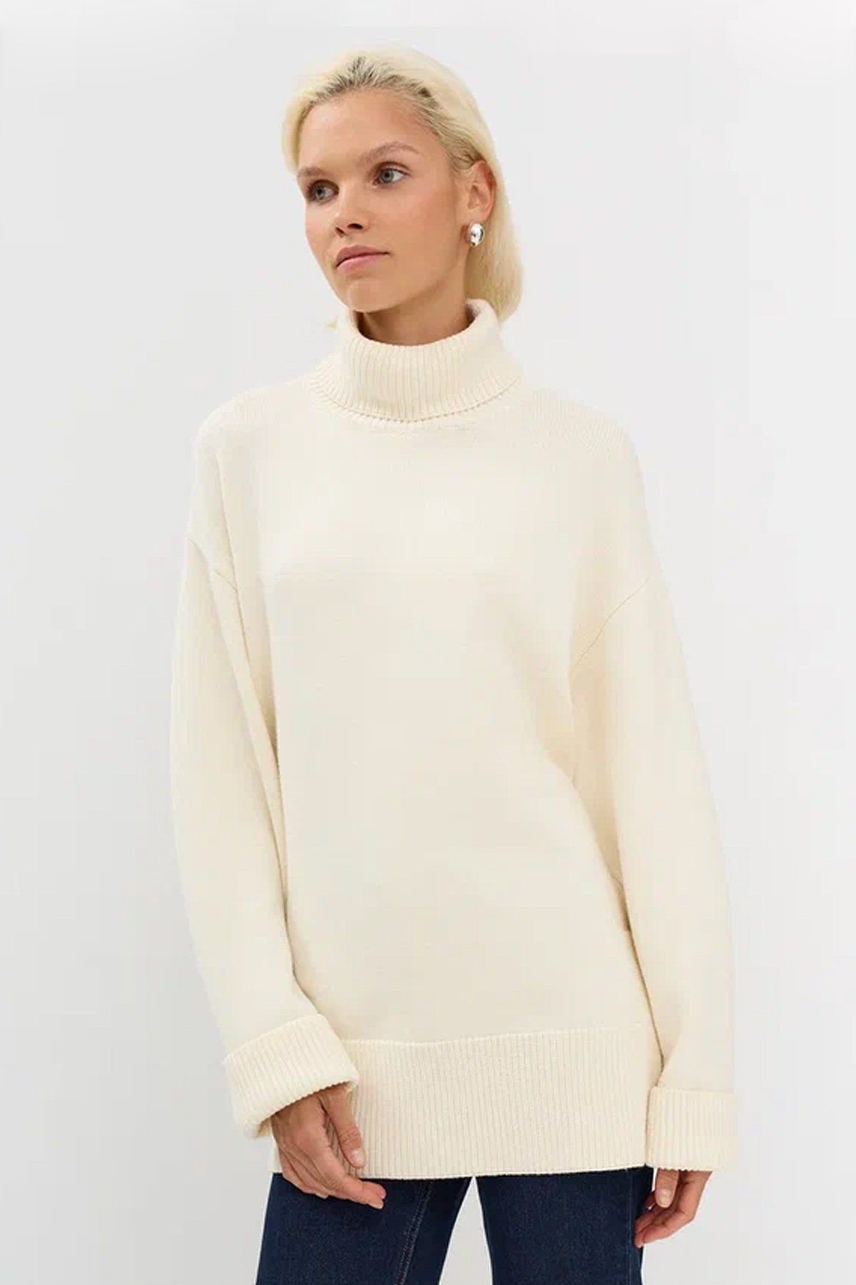Удлинённый джемпер с воротником-стойкой, 44р
