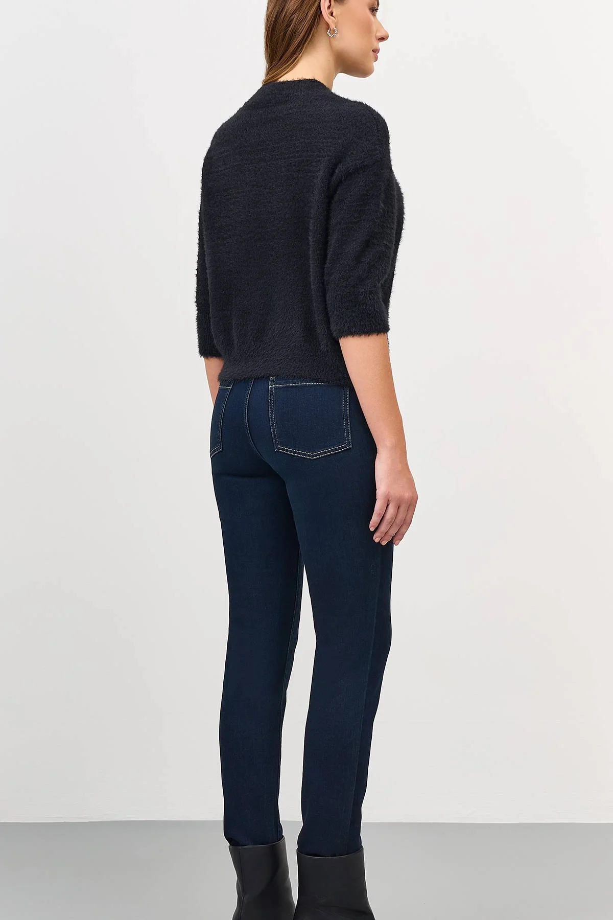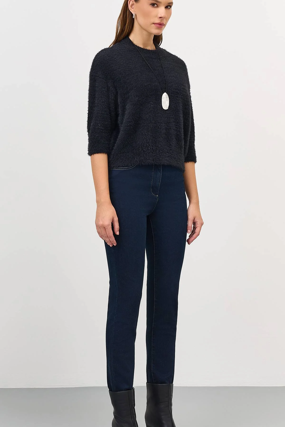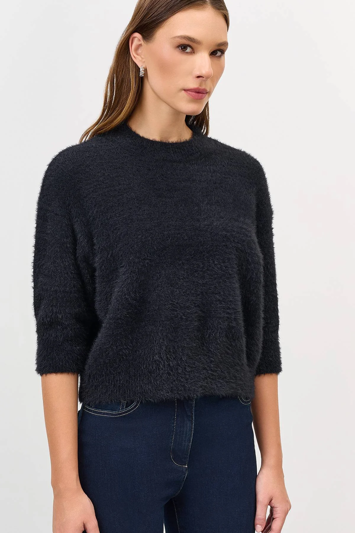 Укороченный джемпер из пушистой фактурной пряжи. Свободный силуэт. Круглый вырез. Укороченные объемные рукава.