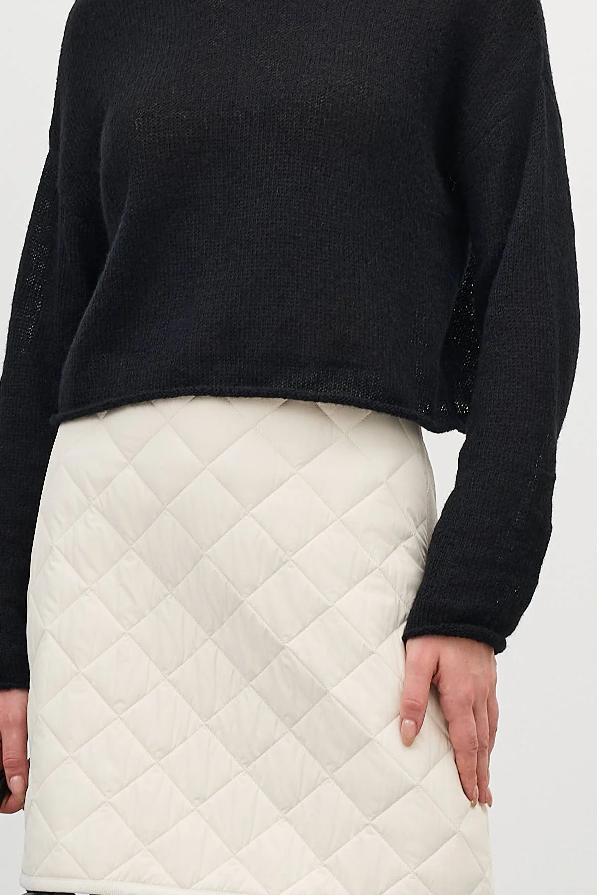 Укороченный вязаный джемпер. Прямой силуэт. Вырез лодочка. Длинные рукава. Спущенная линия плеч. В составе шерсть.