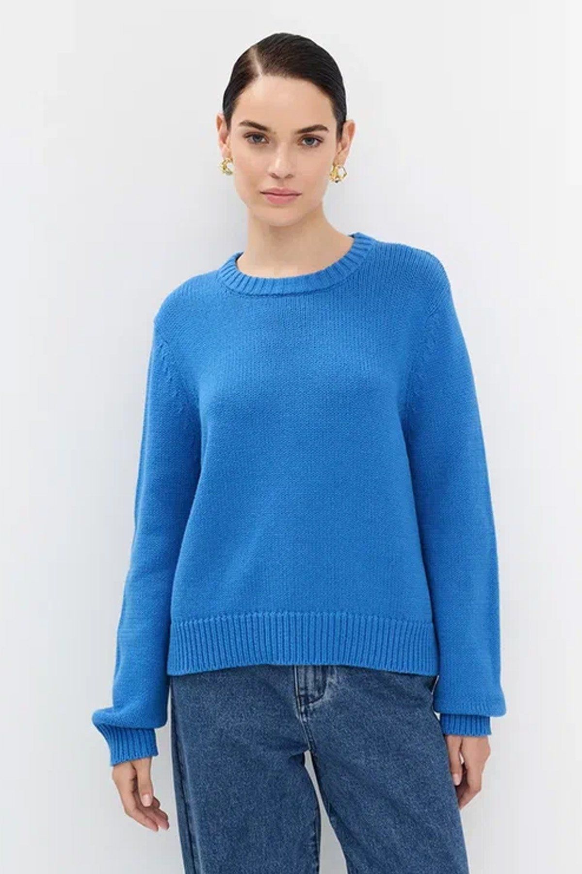 Яркий джемпер прямого силуэта в синем цвете, 44р