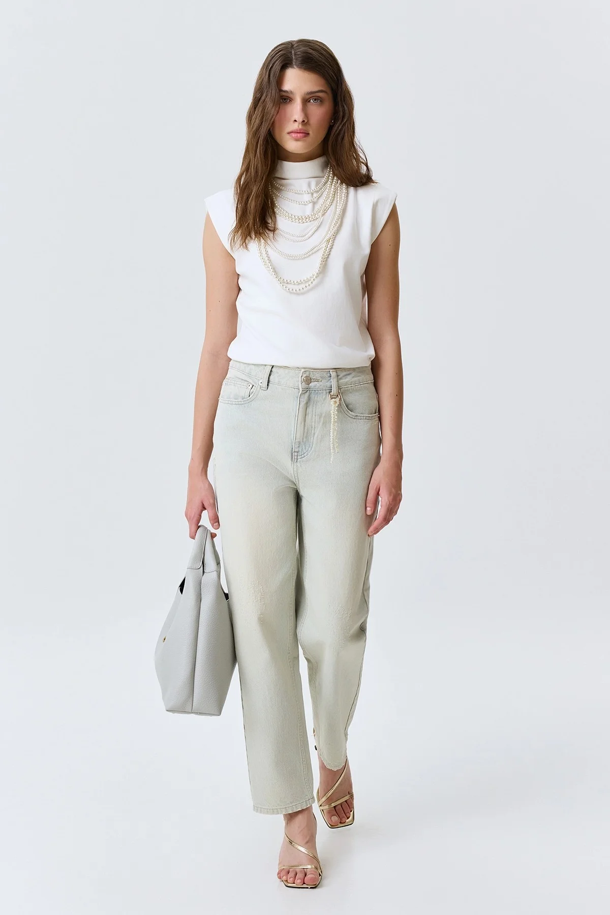 Джинсы-бананы с декором, 50