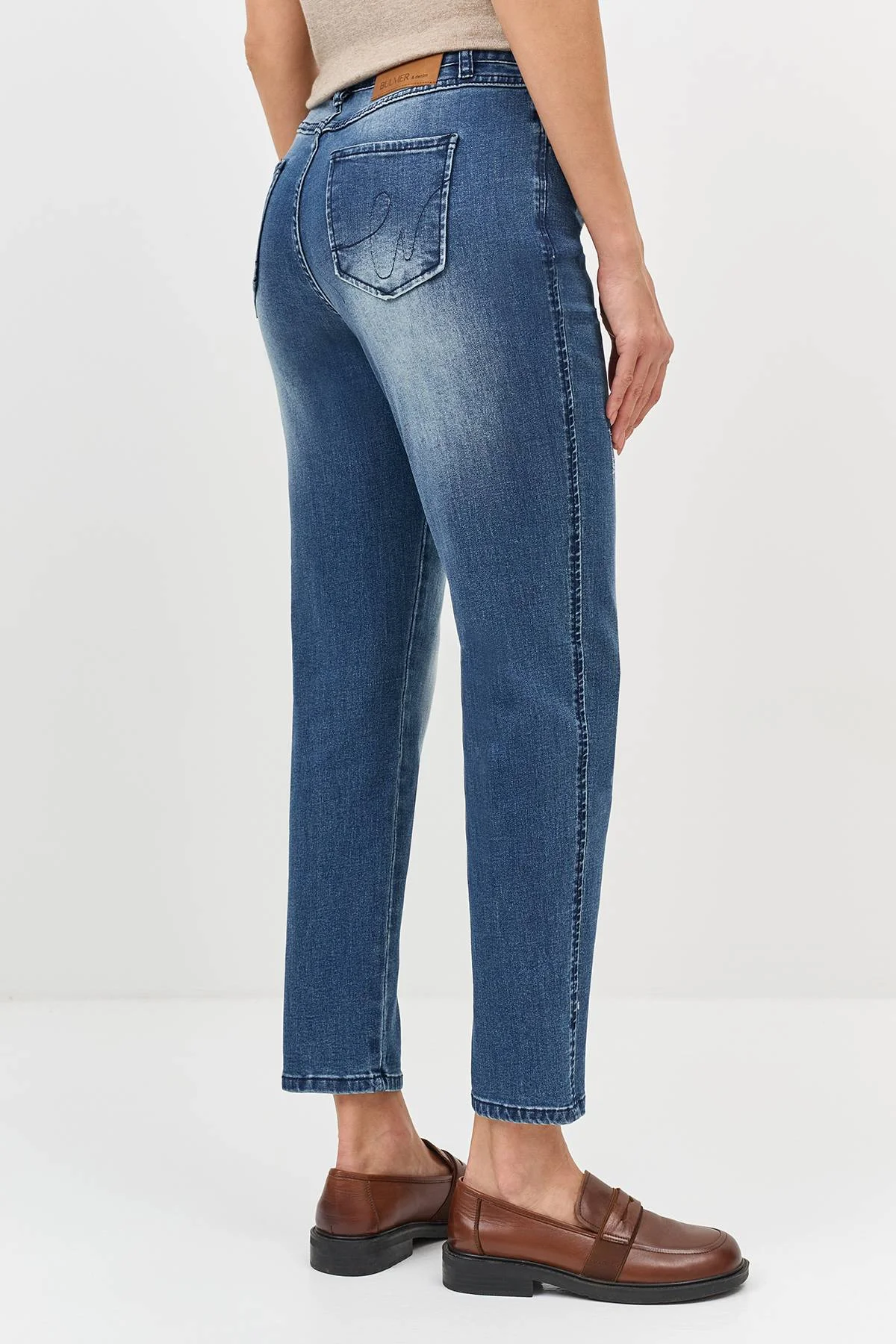 Универсальный прямой крой с мягким сужением книзу создает аккуратный повседневный силуэт. Деликатная варка и декоративная тесьма на шлёвках добавляют модели стильные детали. Эластичный материал обеспечивает комфорт и сохраняет форму в течение дня.