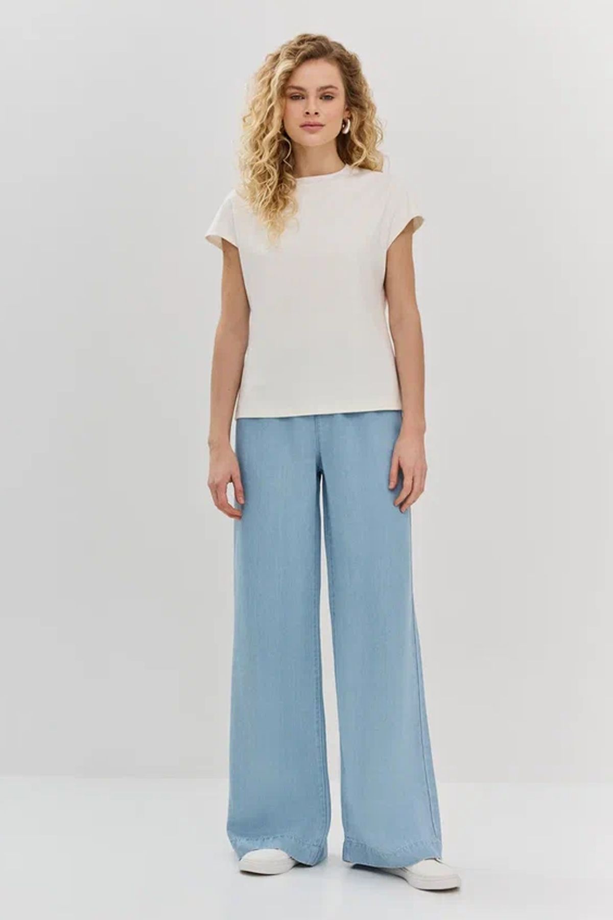 Джинсы-палаццо на резинке в светло-синем цвете, 48р