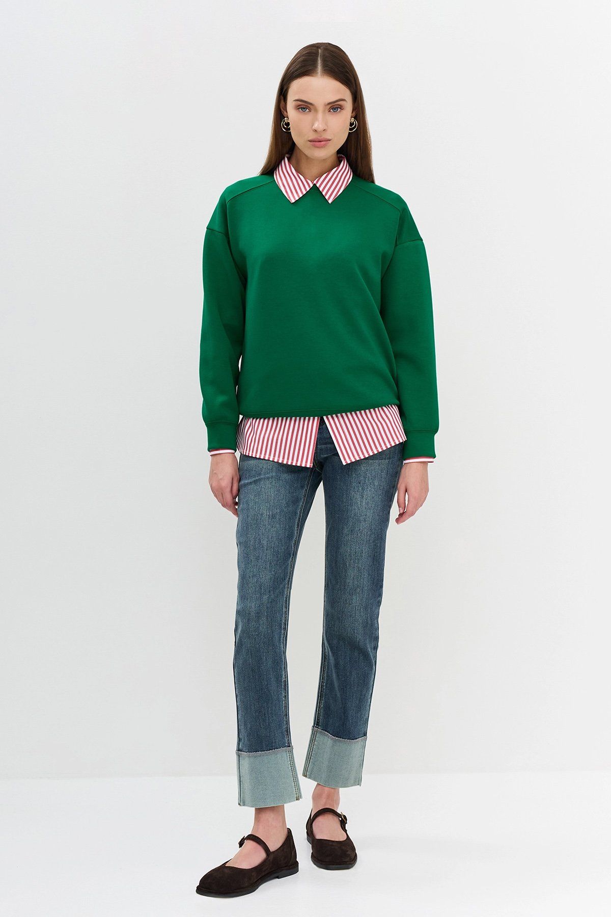 Джинсы прямого кроя с широкими отворотами, 46р