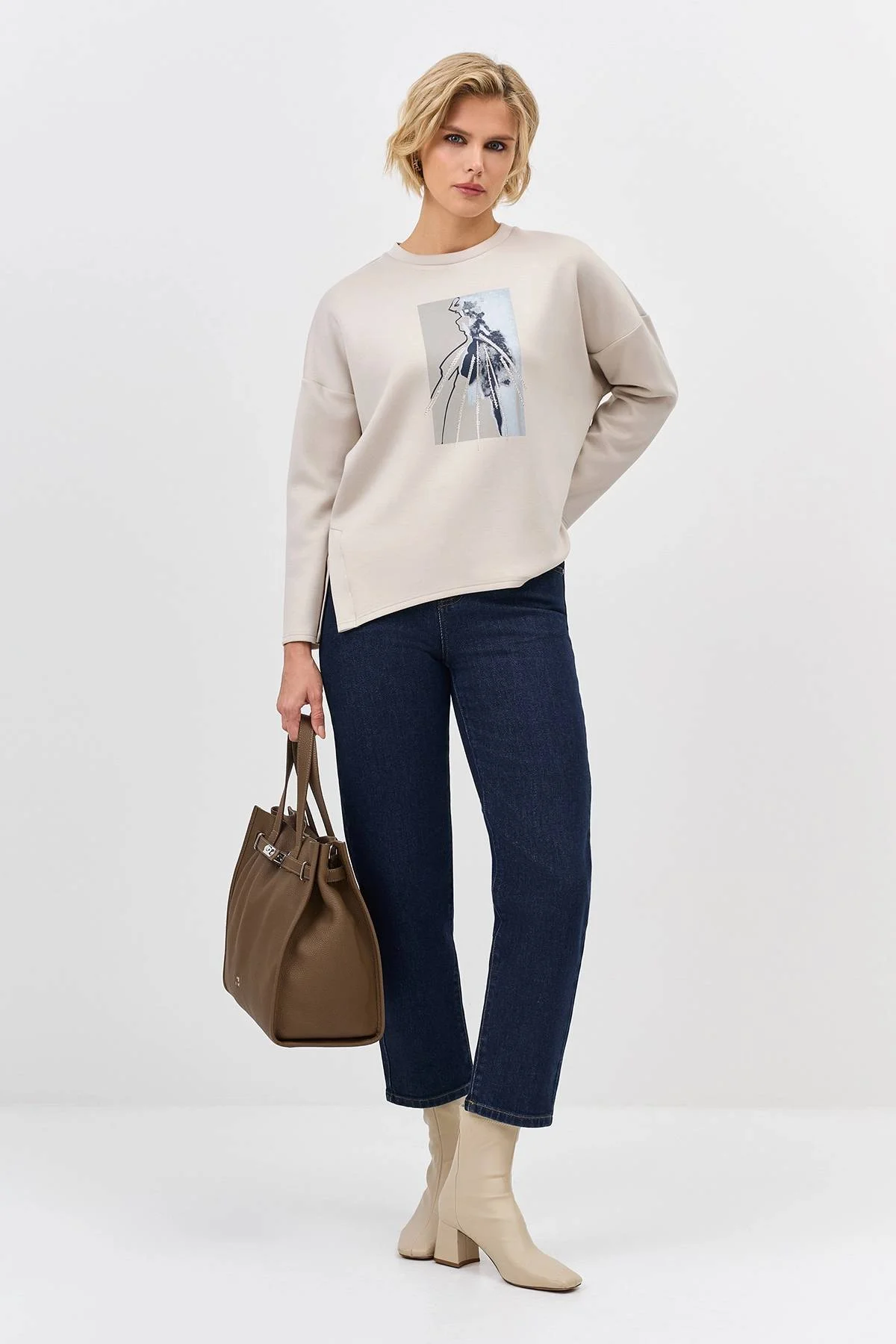 Джинсы с акцентной отрезной кокеткой из классического денима. Прямой силуэт немного заужен к низу. Застежка на молнию и металлическую пуговицу. Четыре кармана. В составе спандекс.