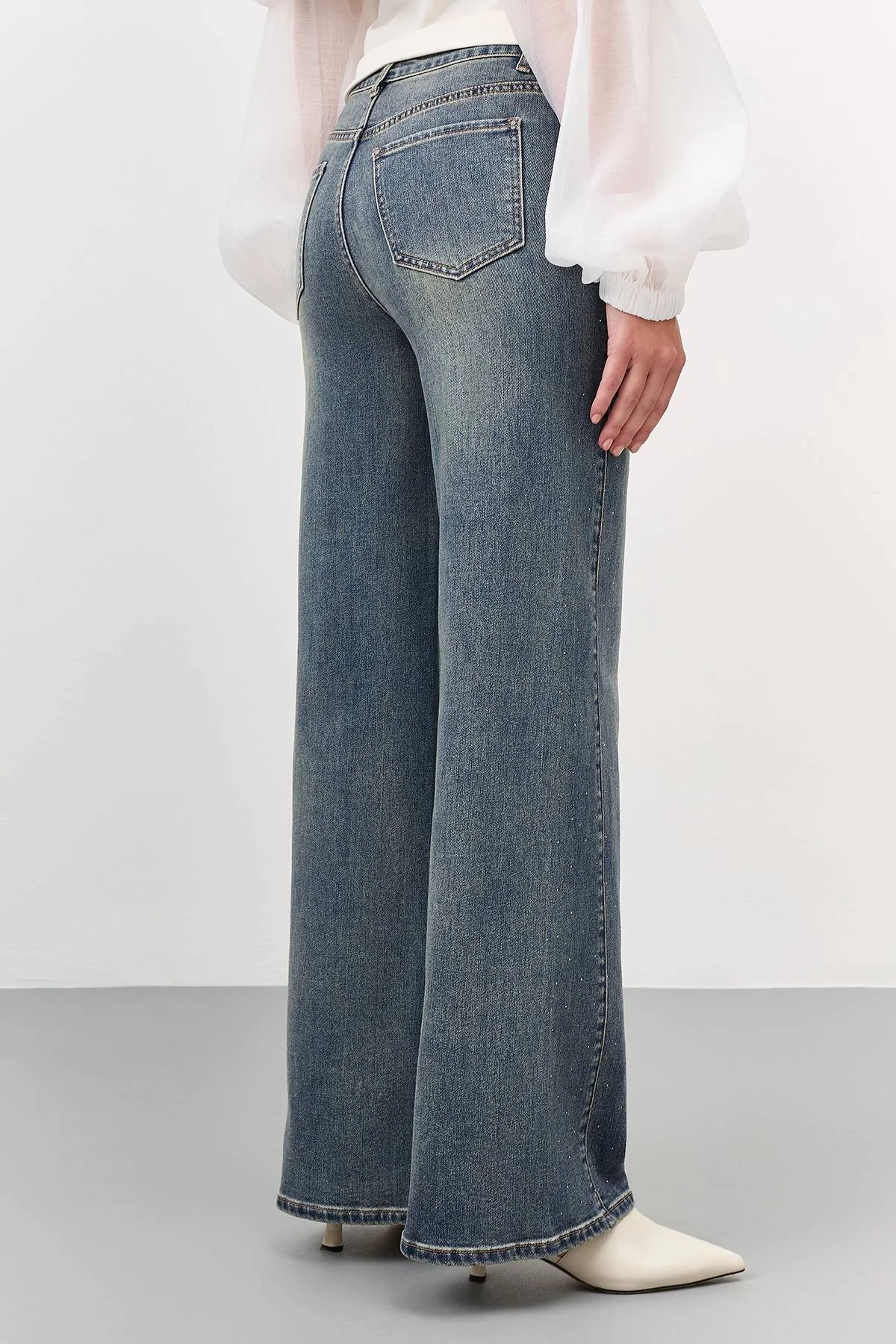 Джинсы с декором из мерцающих страз. Прямой силуэт. Застежка на молнию и металлическую пуговицу. Пять карманов. Дополнены деликатной варкой. В составе спандекс.