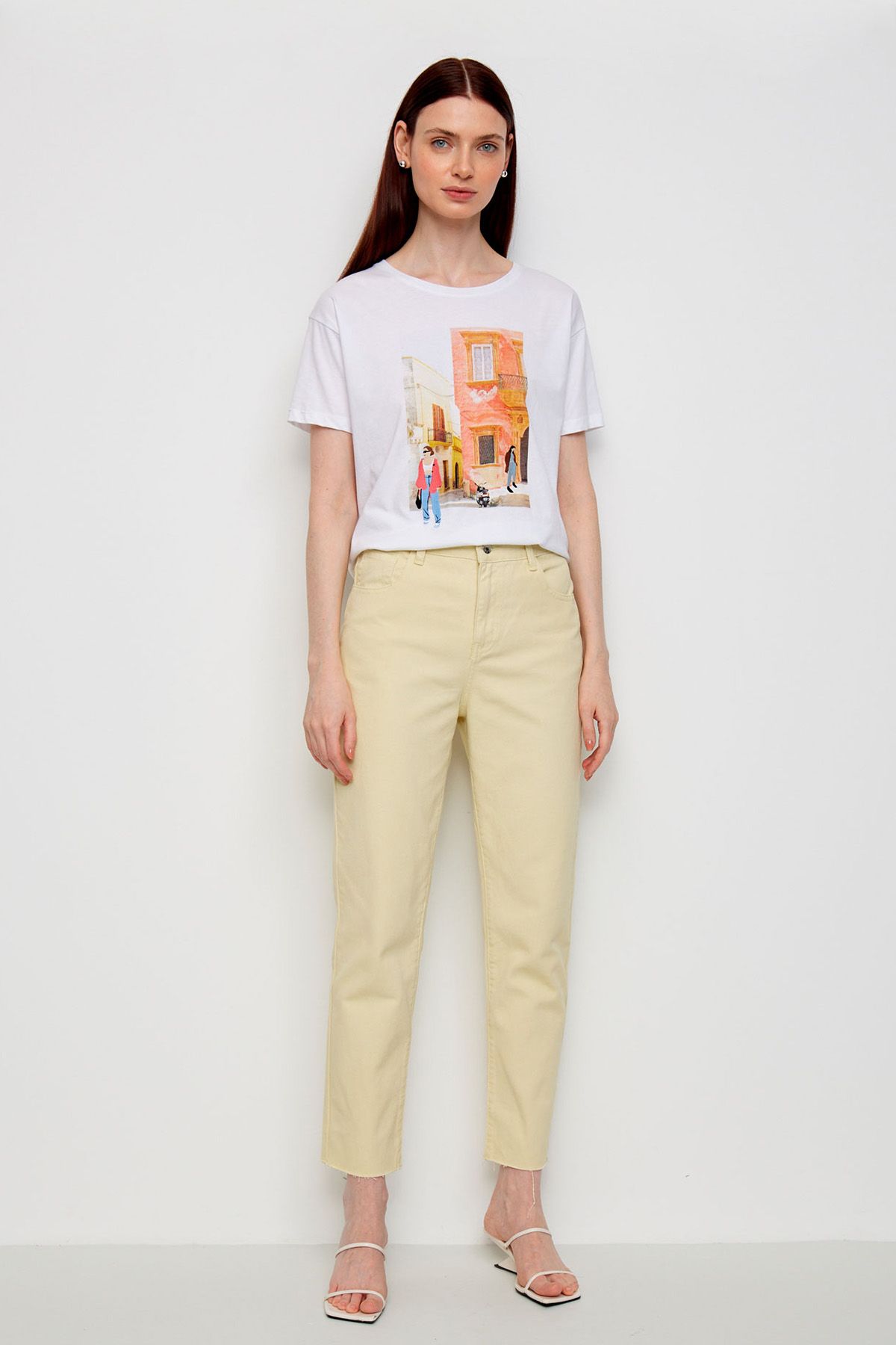 Светлые джинсы, капсула Yellow Flower. Мягкий деним из 100% хлопка обеспечивает комфорт и долговечность. Классический, слегка зауженный к низу силуэт создает элегантный и современный образ. Высокая посадка по талии подчеркивает фигуру и обеспечивает удобство. Необработанный низ добавляет джинсам непринужденный и стильный вид. Предусмотрены функциональные карманы и шлевки для ремня. Застежка на молнию и пуговицу гарантирует надежную фиксацию.