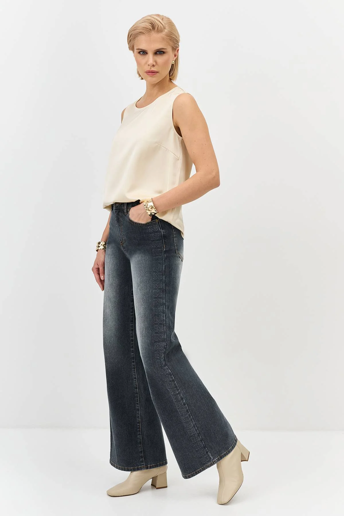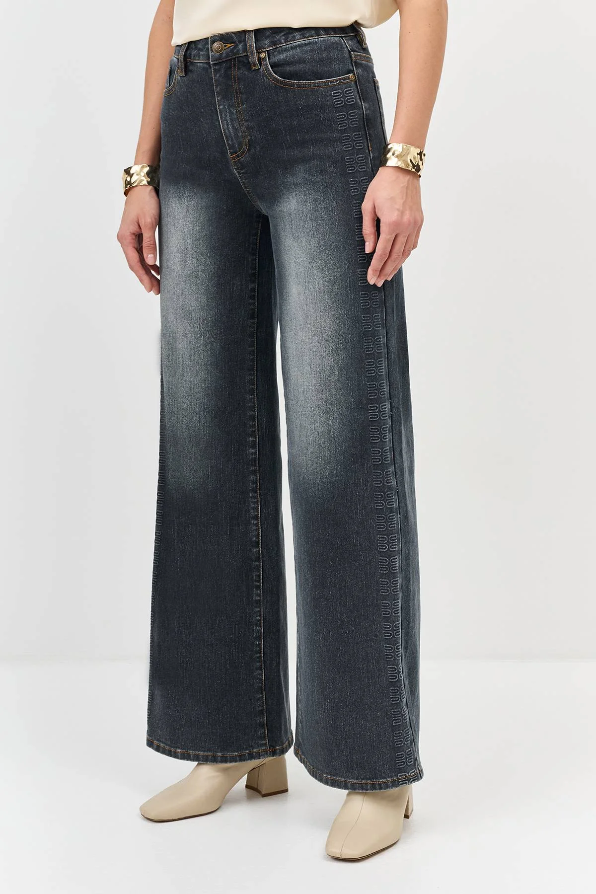 Джинсы широкого кроя с легким эффектом потертости, 42