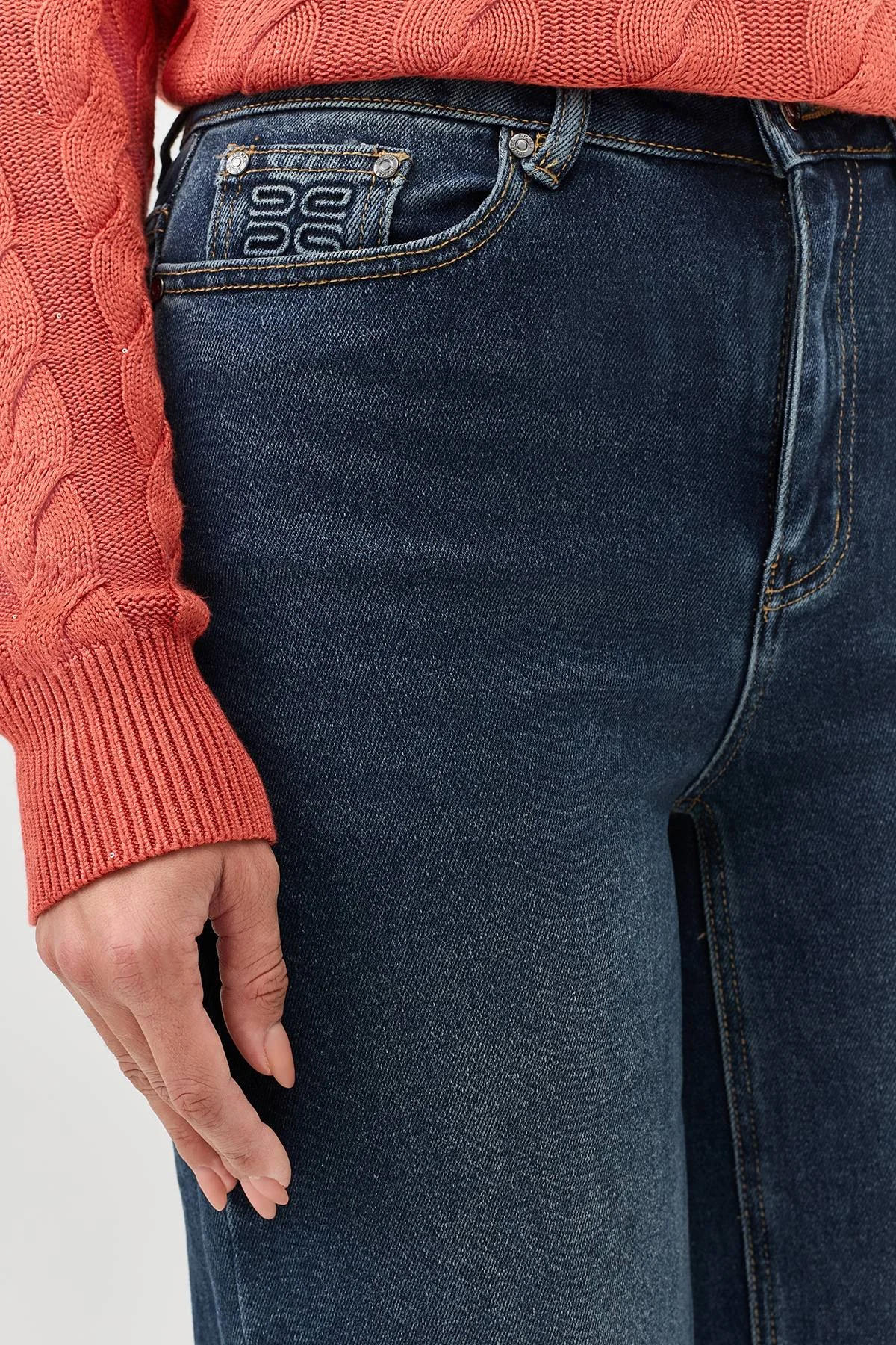 Свободный прямой крой с мягкой варкой создает расслабленный уличный образ. Акцентная вышивка на заднем кармане добавляет модели индивидуальный характер. Эластичный деним обеспечивает комфорт и сохраняет форму в течение дня.