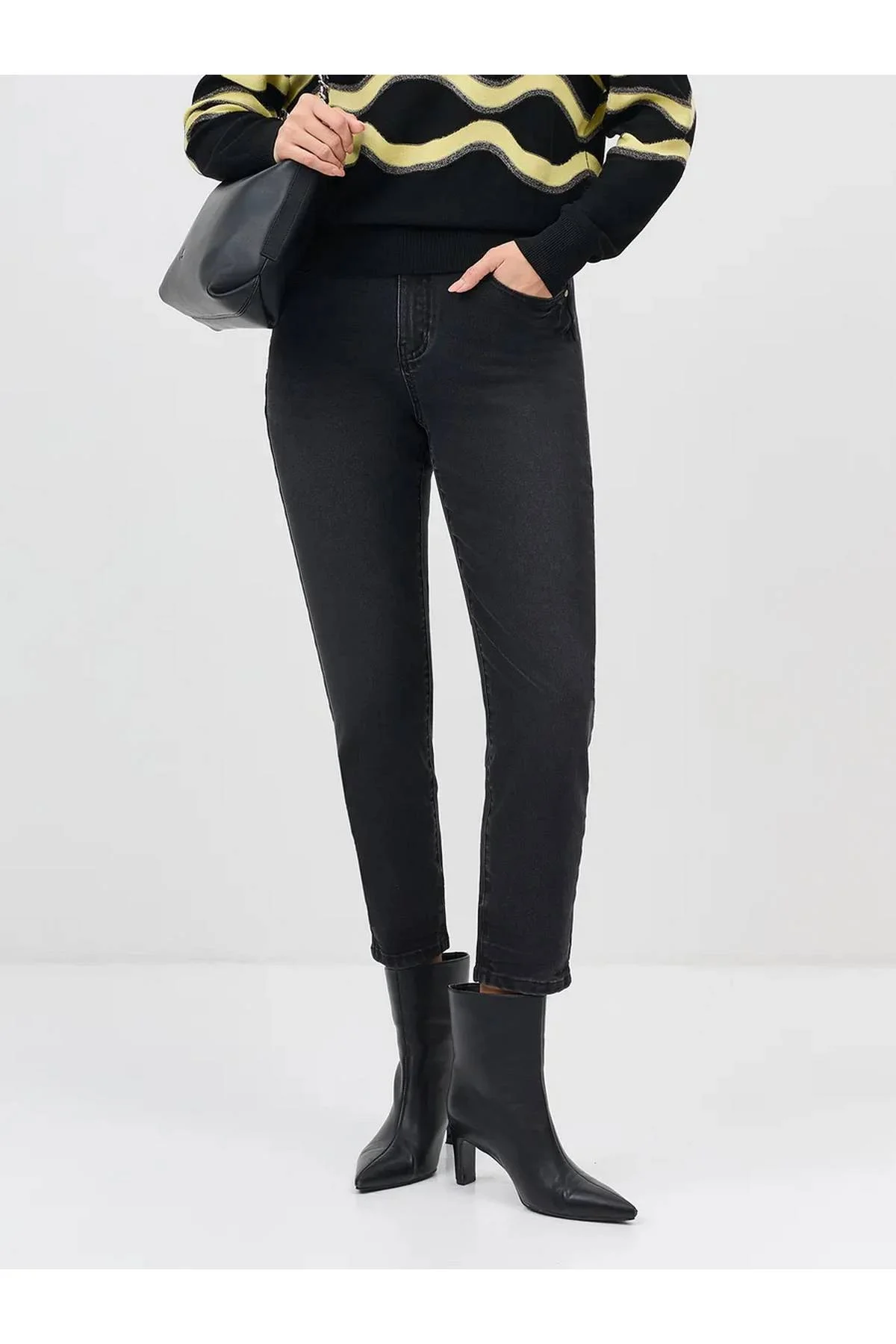 Утепленные широкие джинсы прямого силуэта. Застежка на молнию и металлическую пуговицу. Пять карманов. В составе спандекс.