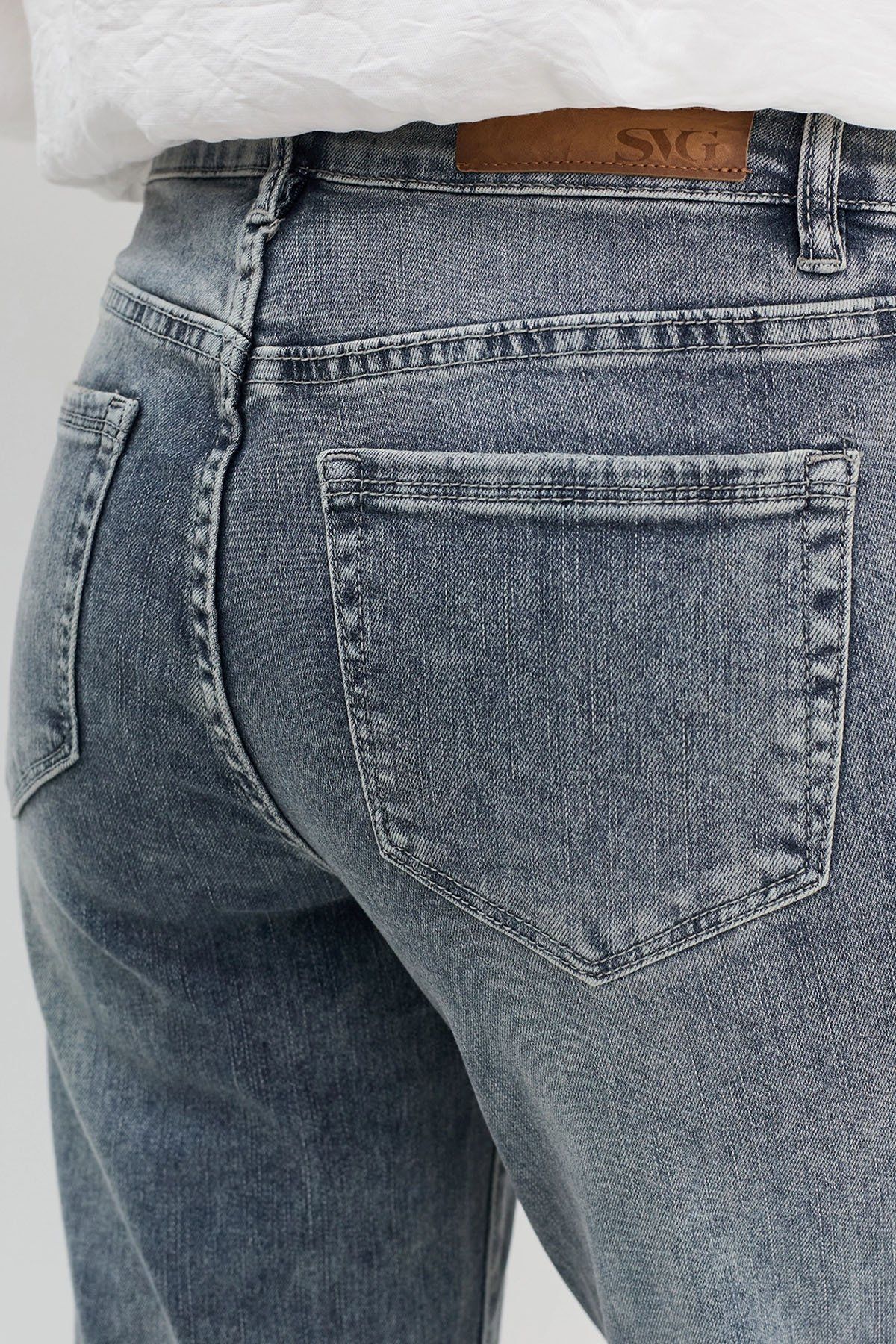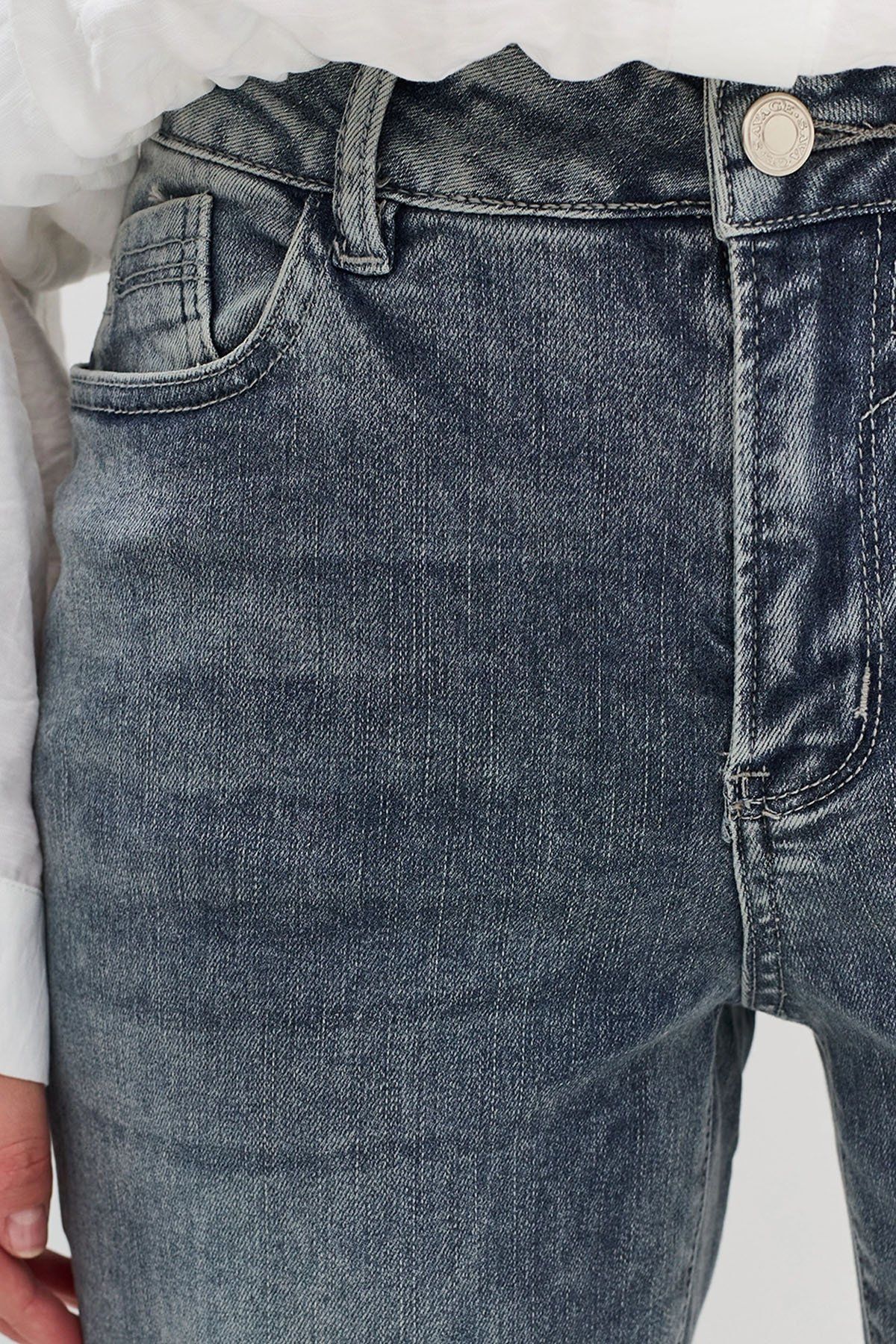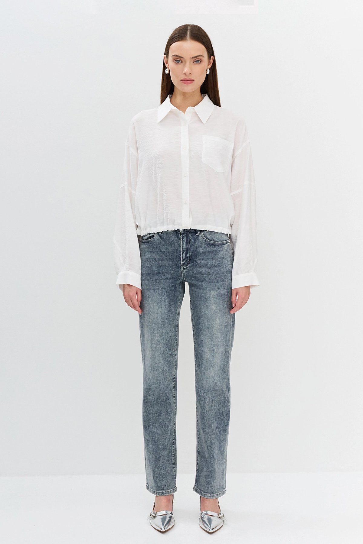 Прямые джинсы из светлого денима хорошо подойдут для повседневных образов. Прямой крой штанин визуально удлиняет ноги. Функциональные прорезные и накладные карманы. Шлёвки позволяют по желанию дополнить модель поясом. Застёжка на молнию и металлическую пуговицу обеспечивает удобство ношения. Джинсы можно сочетать с любым видом верха (джемперы, топы, футболки, блузки).