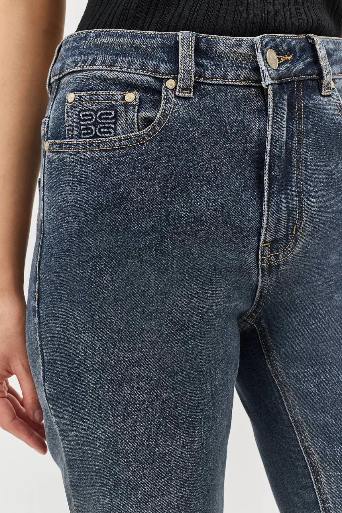 Классический прямой крой с изящной крученой вышивкой создает элегантный акцент. Функциональные пять карманов и металлическая фурнитура добавляют модели практичности. Эластичный деним обеспечивает комфорт и идеальную посадку в течение всего дня.
