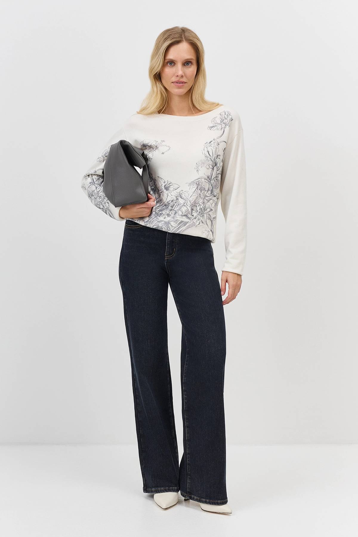 Утепленные широкие джинсы прямого силуэта, 42