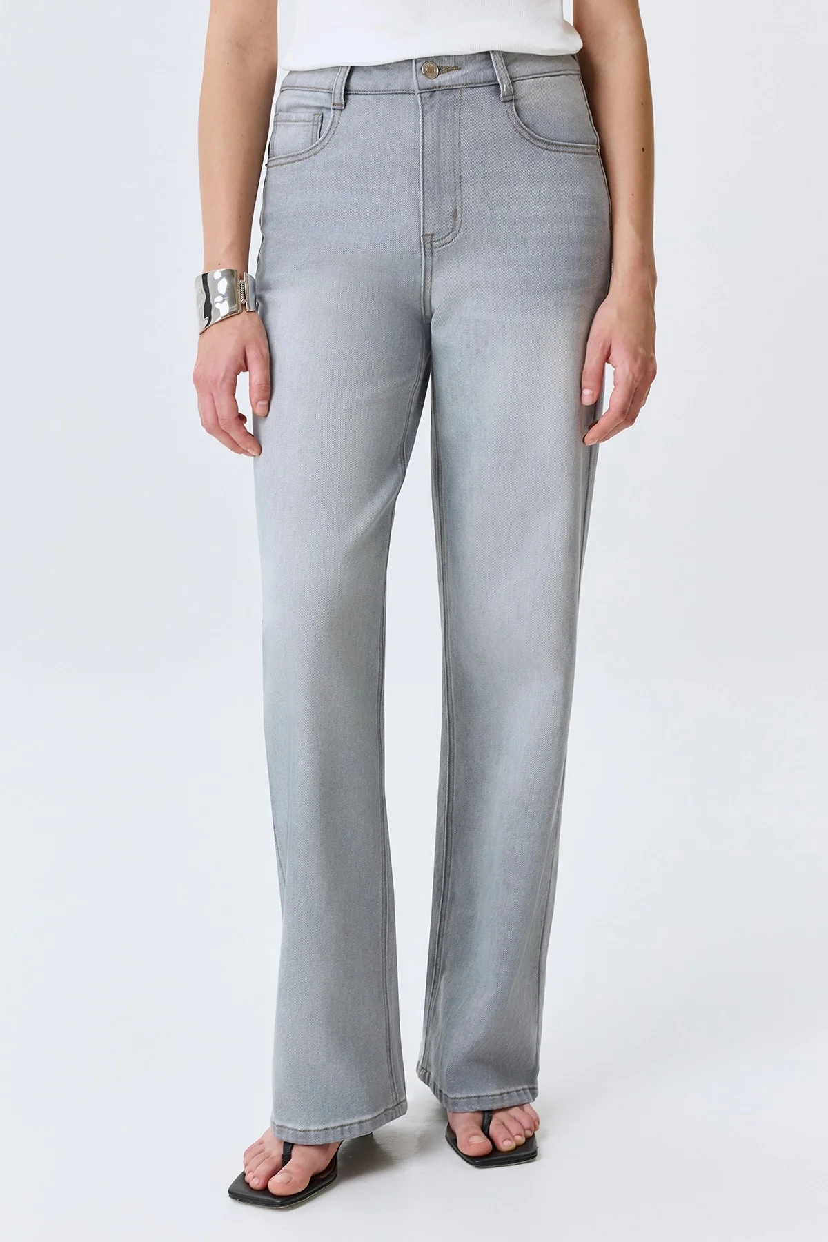 Прямые серые джинсы, 46