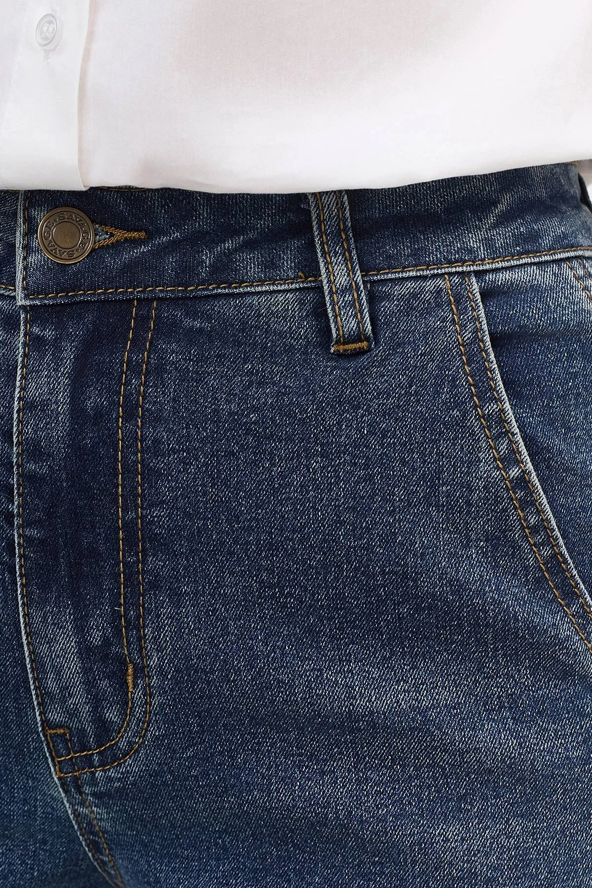 Широкие джинсы с акцентными рельефами по боковым швам. Прямой силуэт немного расширен к низу. Застежка на молнию и металлическую пуговицуу. Четыре кармана. В составе спандекс.