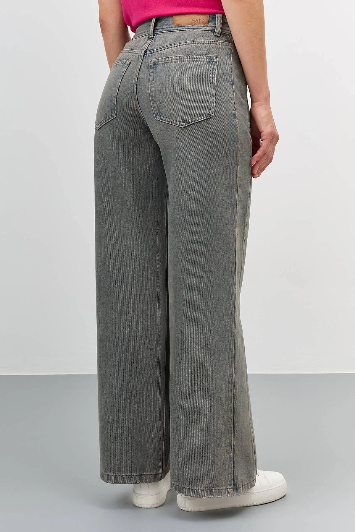 Широкие джинсы из вареного денима с крэш эффектом. Свободный силуэт. Застежка на молнию и металлическую пуговицуу. Пять карманов. В составе вискоза.