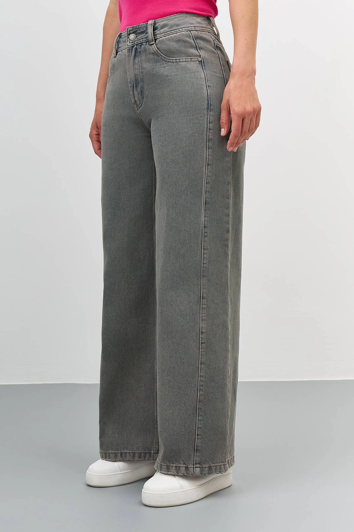 Широкие джинсы из вареного денима с крэш эффектом. Свободный силуэт. Застежка на молнию и металлическую пуговицуу. Пять карманов. В составе вискоза.