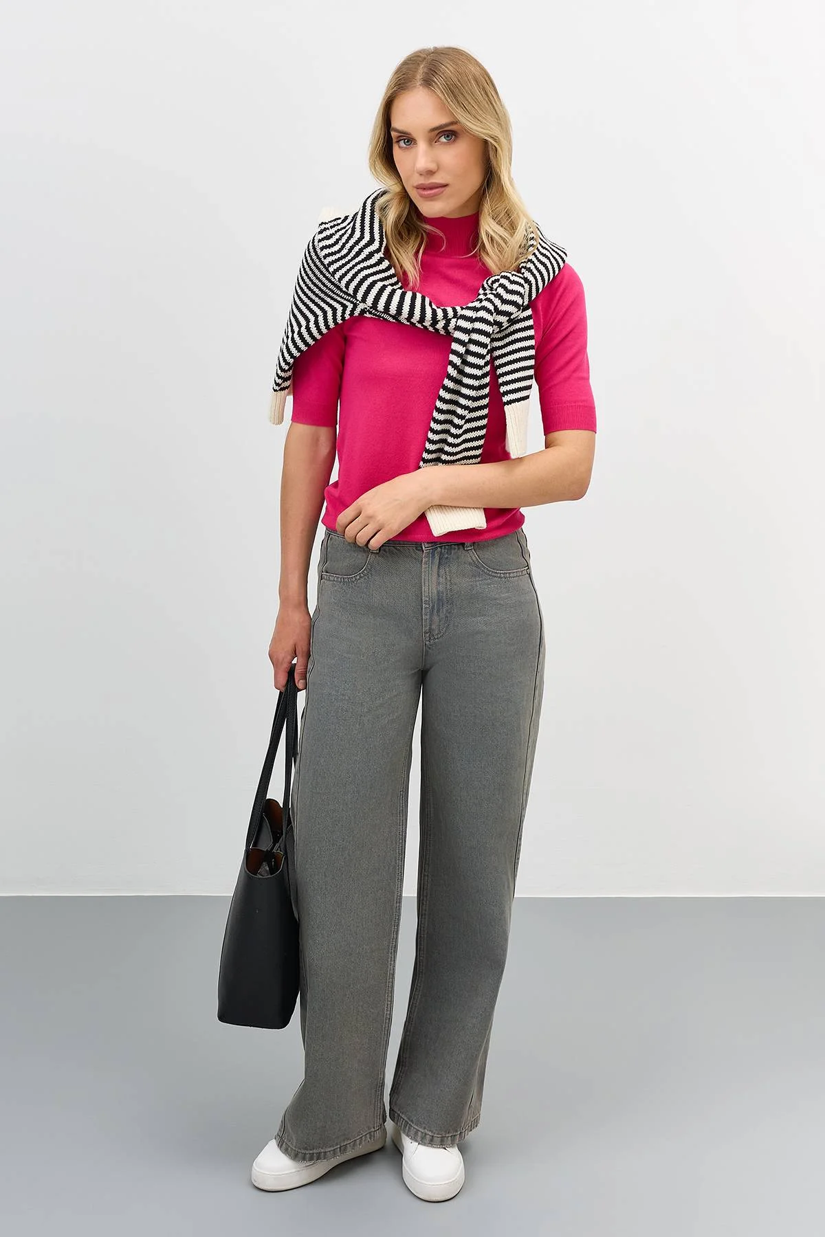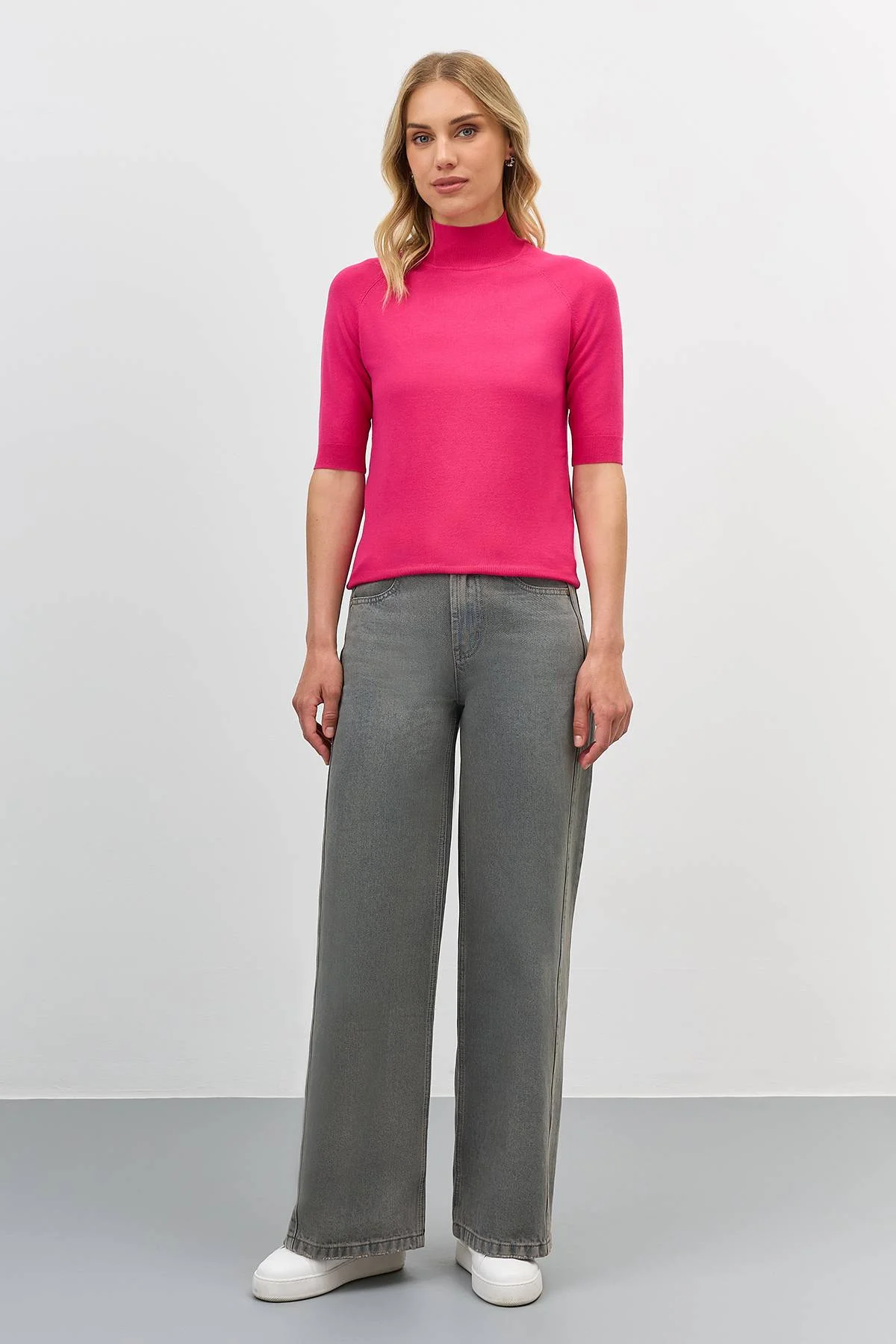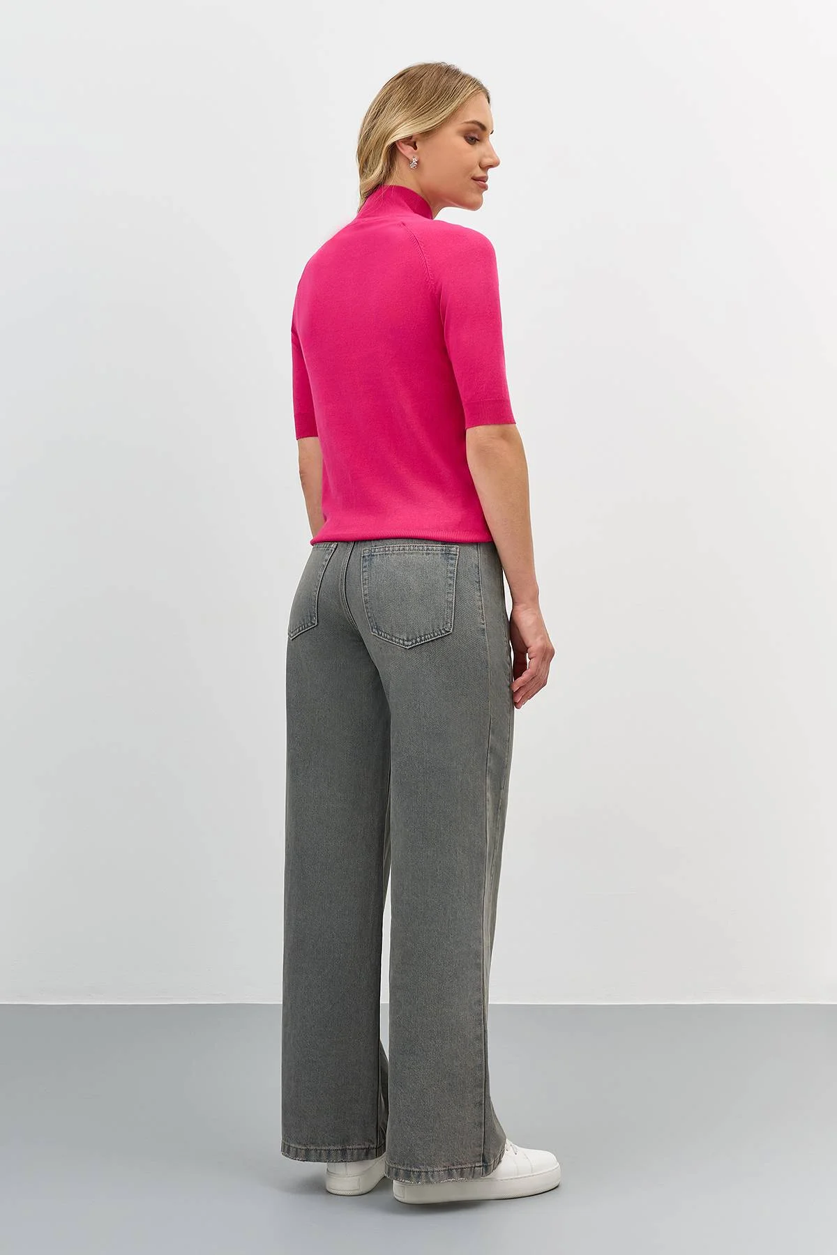 Широкие джинсы из вареного денима с крэш эффектом. Свободный силуэт. Застежка на молнию и металлическую пуговицуу. Пять карманов. В составе вискоза.