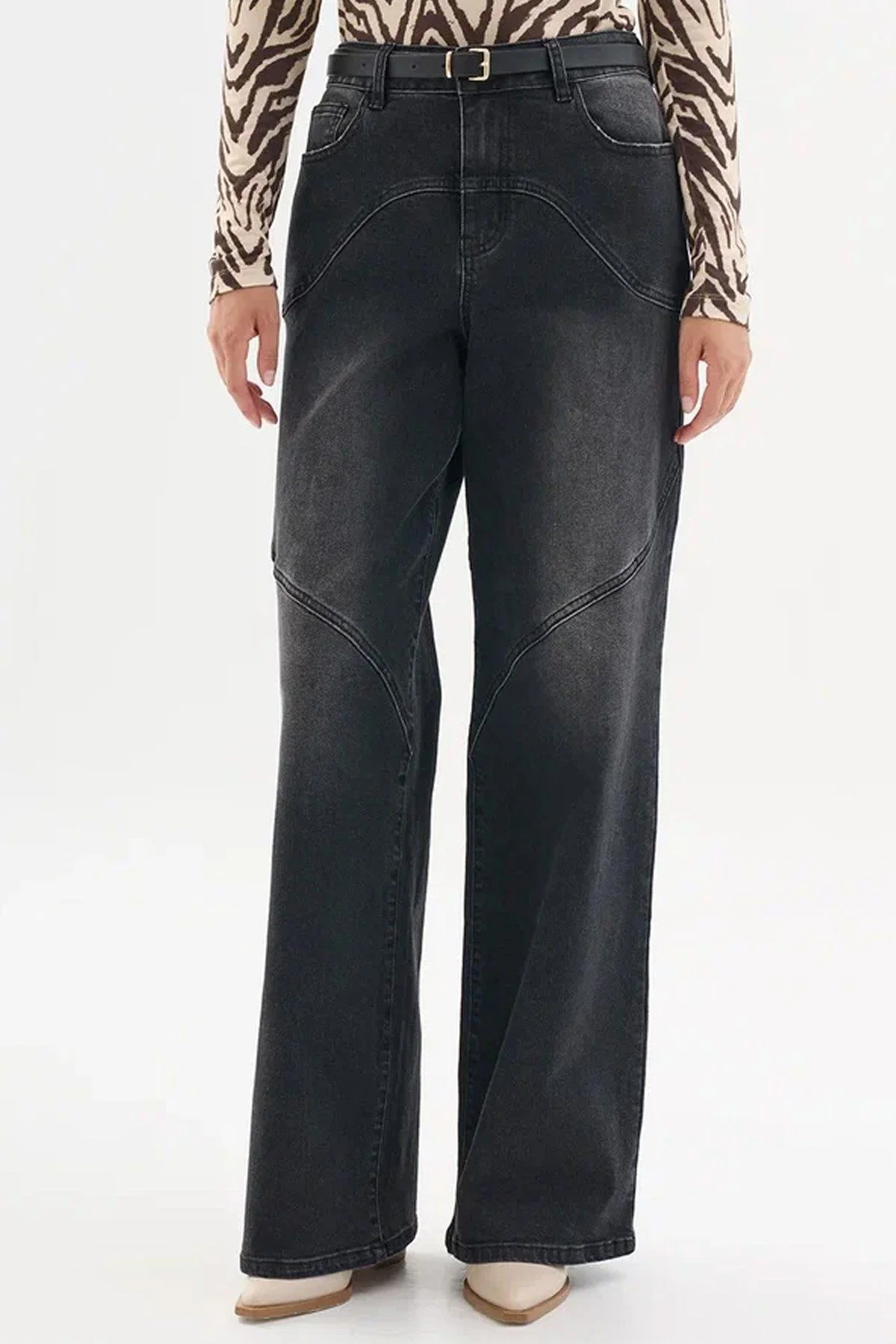 Стильные прямые джинсы клёш с декоративной отделкой. Темный деним добавляет разнообразия в гардероб. Функциональные прорезные и накладные карманы. Шлёвки позволяют по желанию дополнить модель поясом. Застёжка на молнию и металлическую пуговицу обеспечивает удобство ношения. Джинсы можно сочетать с любым видом верха (джемперы, топы, футболки, блузки).