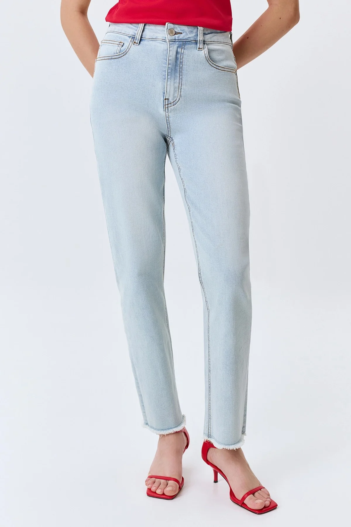 Светлые зауженные джинсы, 48