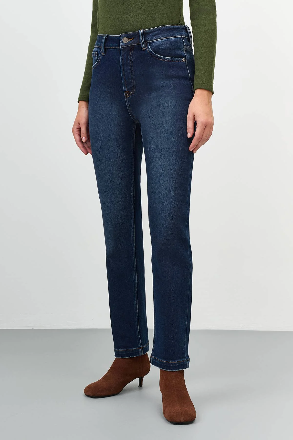 Утепленные джинсы с деликатной варкой. Прямой, слегка зауженный силуэт. Застежка на молнию и металлическую пуговицуу. Пять карманов. В составе спандекс.