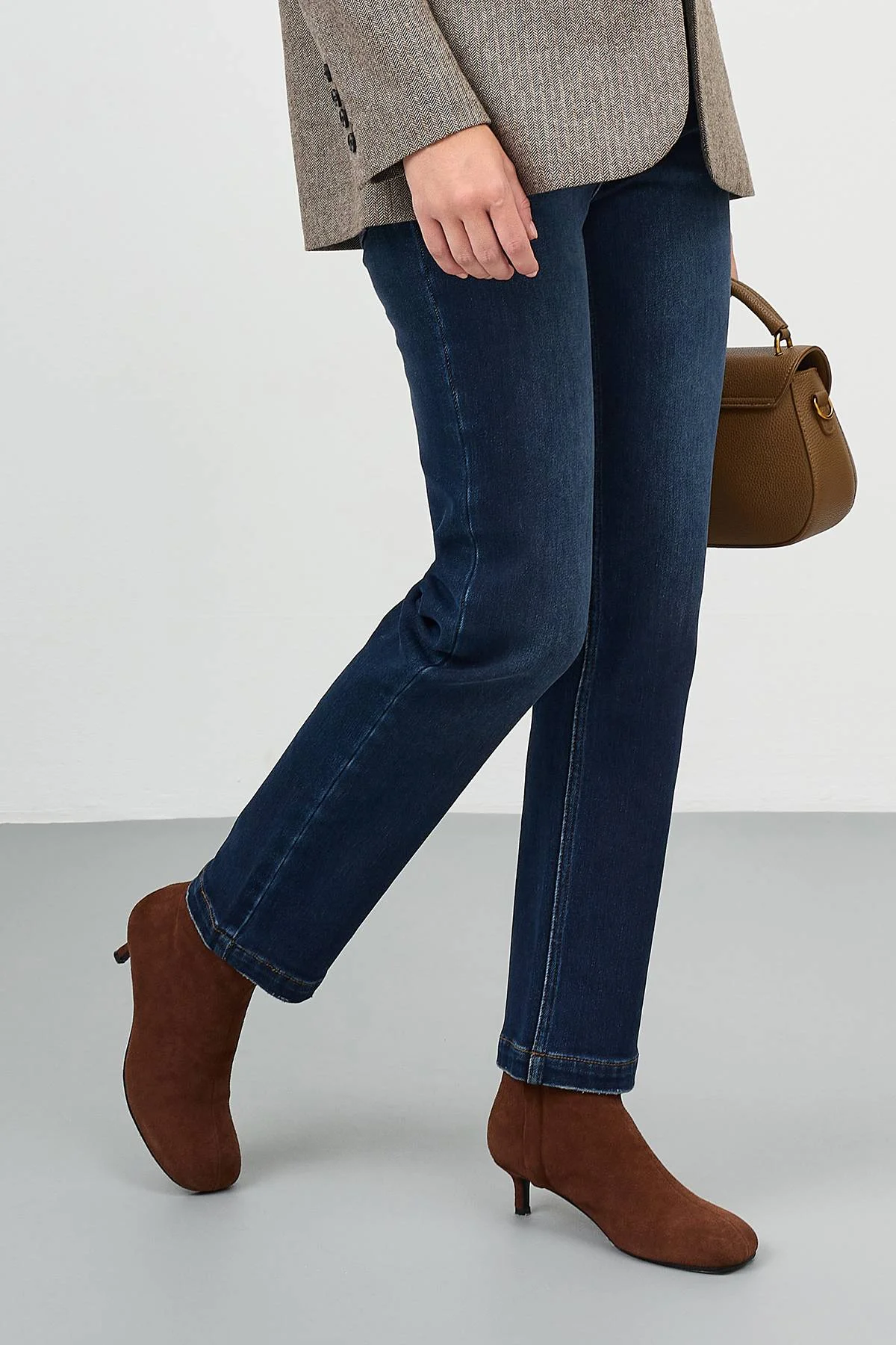 Утепленные джинсы с деликатной варкой. Прямой, слегка зауженный силуэт. Застежка на молнию и металлическую пуговицуу. Пять карманов. В составе спандекс.