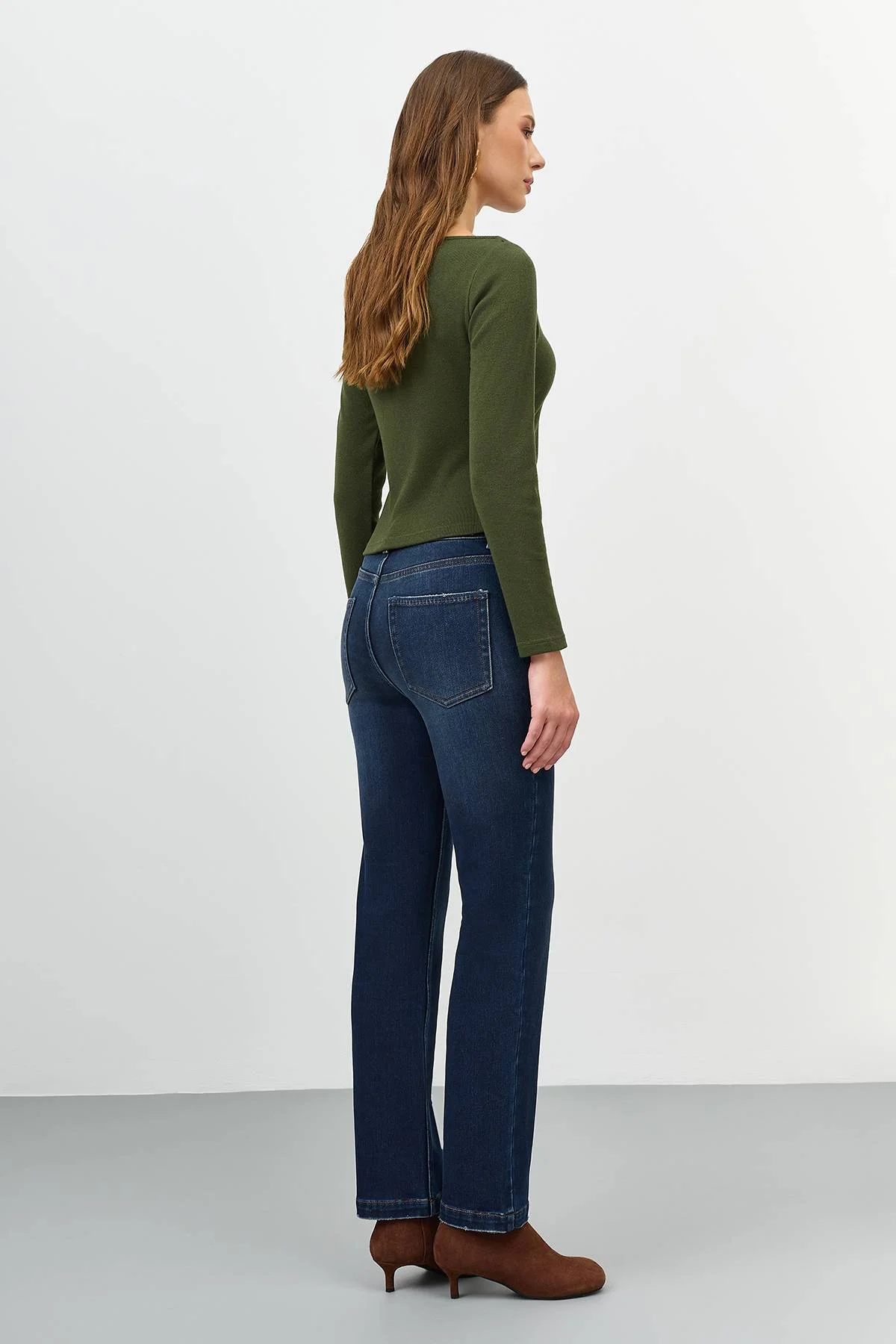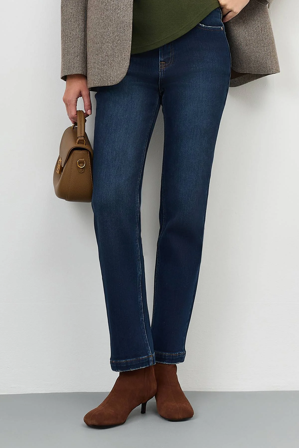 Утепленные джинсы с деликатной варкой. Прямой, слегка зауженный силуэт. Застежка на молнию и металлическую пуговицуу. Пять карманов. В составе спандекс.