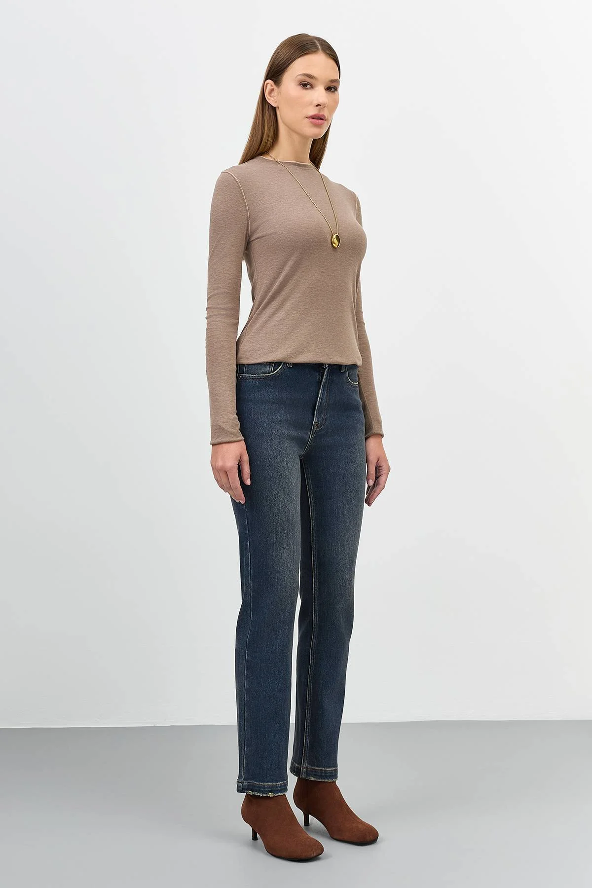 Утепленные джинсы с деликатной варкой. Прямой, слегка зауженный силуэт. Застежка на молнию и металлическую пуговицуу. Пять карманов. В составе спандекс.