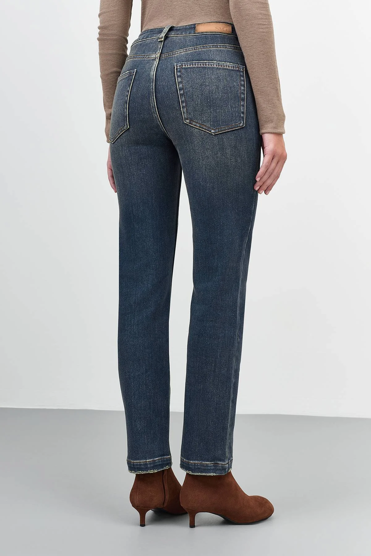 Утепленные джинсы с деликатной варкой. Прямой, слегка зауженный силуэт. Застежка на молнию и металлическую пуговицуу. Пять карманов. В составе спандекс.