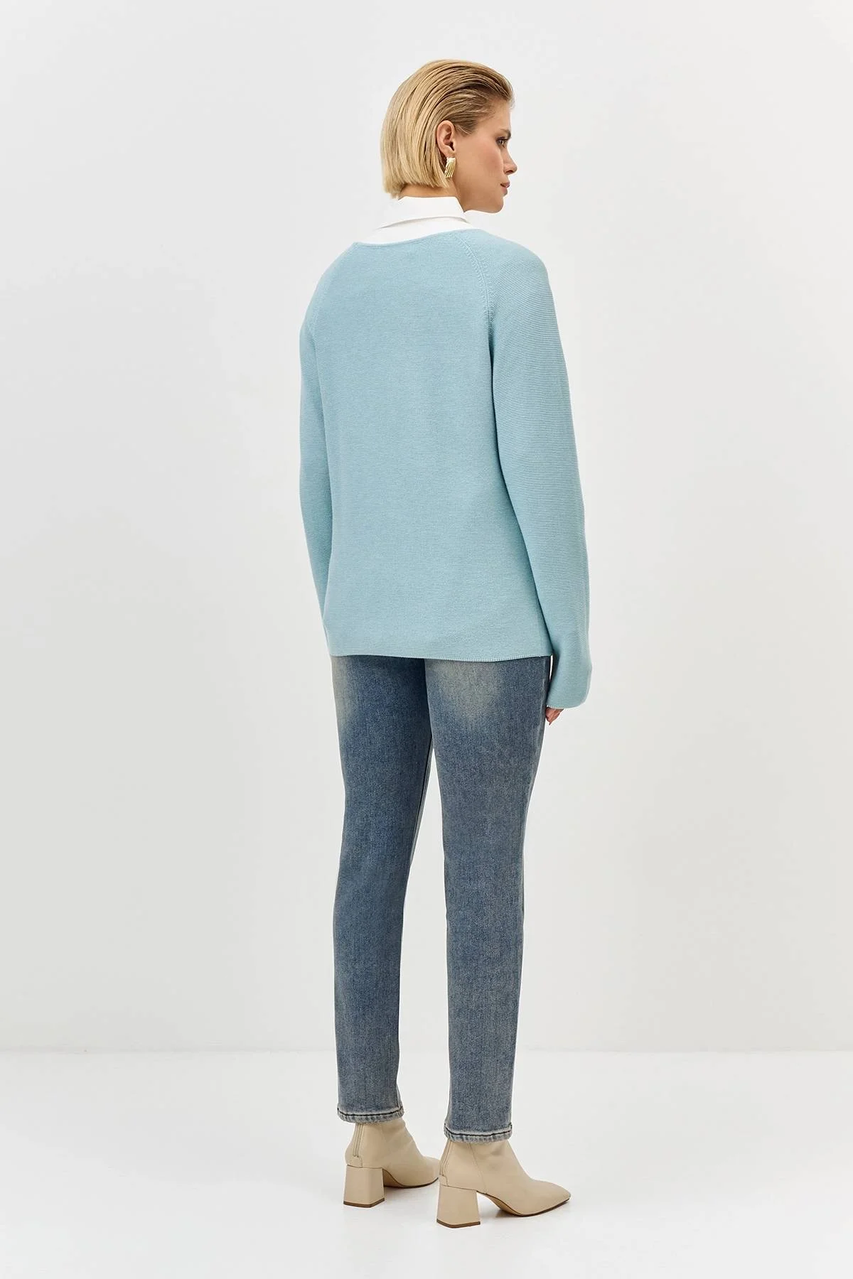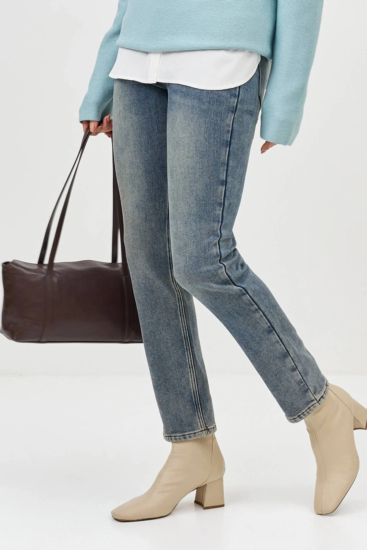 Утепленные джинсы с контрастными карманами. Зауженный силуэт. Застежка на молнию и металлическую пуговицу. Пять карманов. Резинка по линии талии сзади. В составе спандекс.